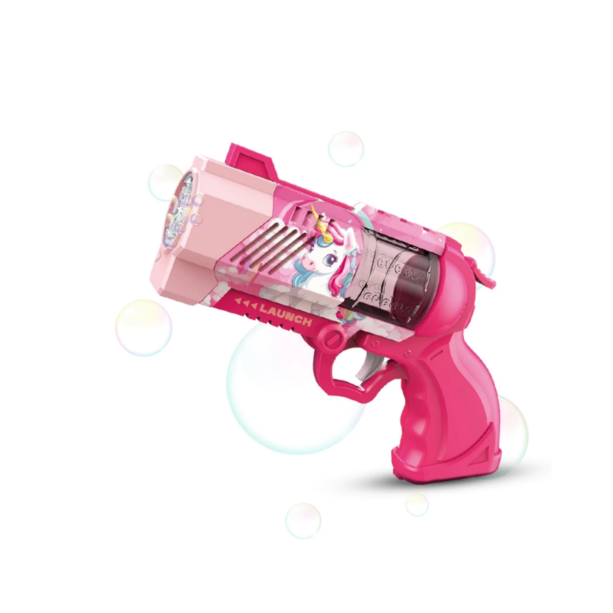 Crea un mundo mágico con el Revólver Unicornio de 8 huecos de burbujas. Perfecto para fiestas y juegos al aire libre.