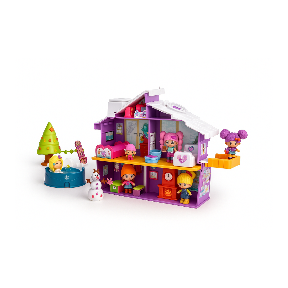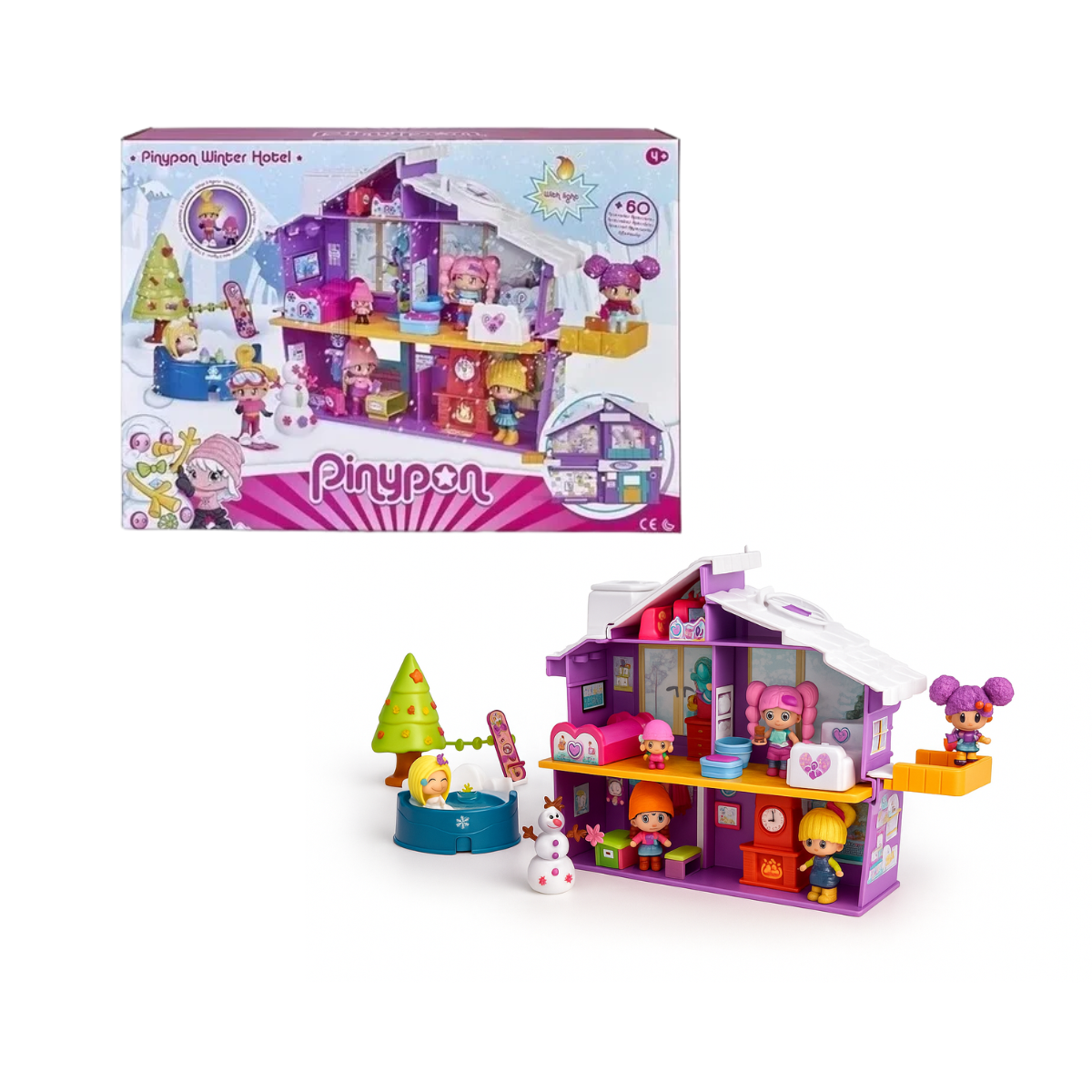 ¡Bienvenida a la diversión sin fin en el Hotel de Invierno de Pinypon! Con sus 3 plantas, este set es el destino perfecto para las vacaciones de tus Pinypon. La planta baja cuenta con una gran recepción y un acogedor salón con chimenea de luces con efecto fuego. La primera planta tiene dos dormitorios, mientras que la buhardilla es ideal para los más pequeños. Incluye una figura de Pinypon y una figura de niña con prendas de tela, además de muchísimos accesorios para que la diversión nunca termine.