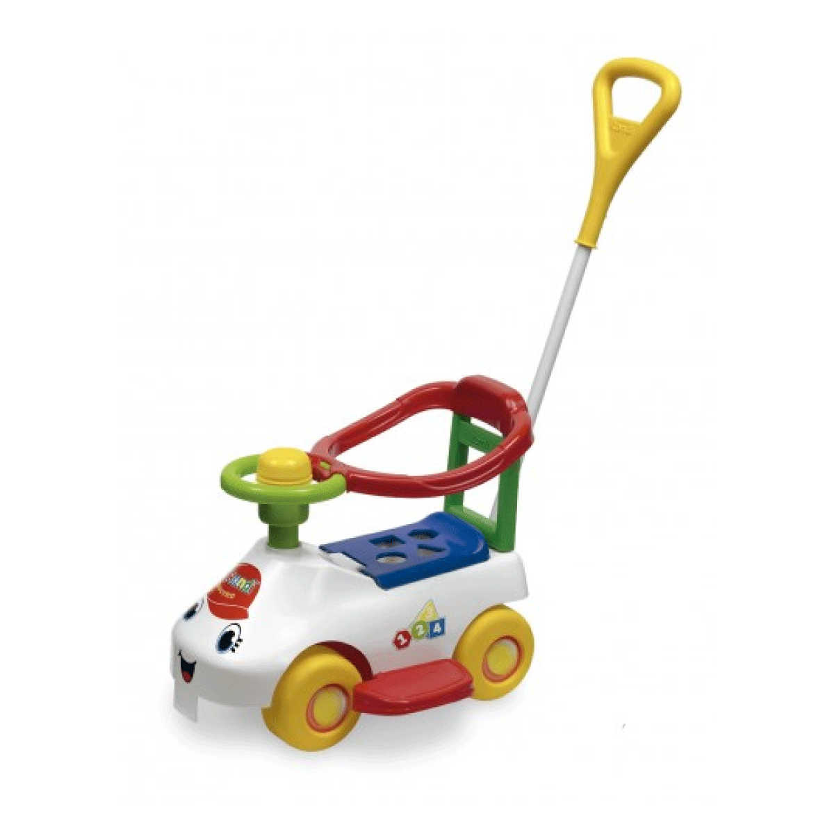 Además de salir de paseo, tu bebé puede jugar a encastrar. Este simpático andador viene con aro de contención, barra de arrastre metálica, bocina, juegos didácticos y apoyapiés. ¡Super seguro!