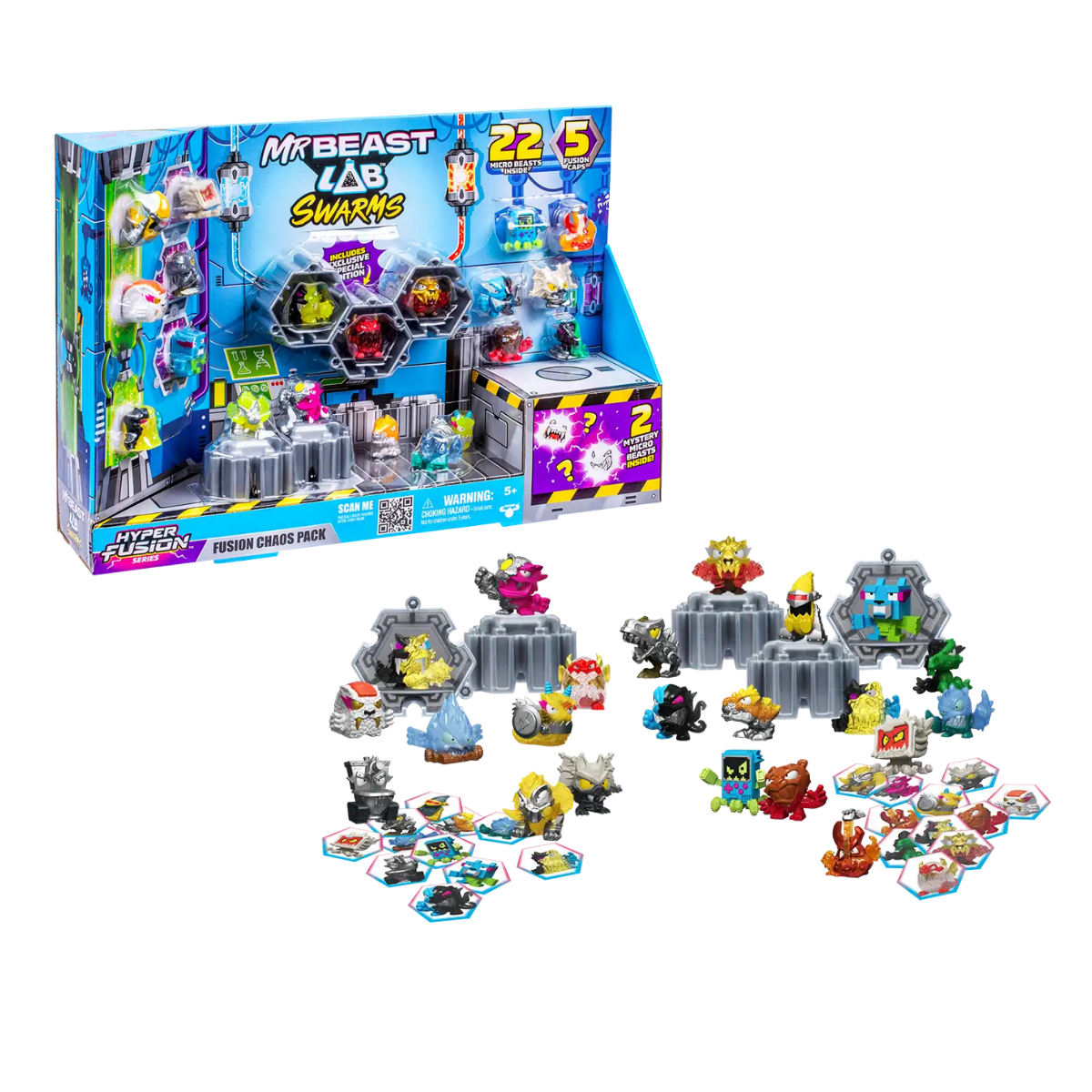 Mr Beast Lab Swarms Hyper Fusion Collection – Fusion Chaos es un juego de experimentos y coleccionables que lleva la experiencia del laboratorio al siguiente nivel. Este set permite descubrir, combinar y fusionar criaturas en un sistema interactivo que estimula la curiosidad y la imaginación. Cada apertura es distinta y sorprendente, invitando a los chicos a crear nuevas mutaciones y expandir su propio universo Mr Beast Lab.