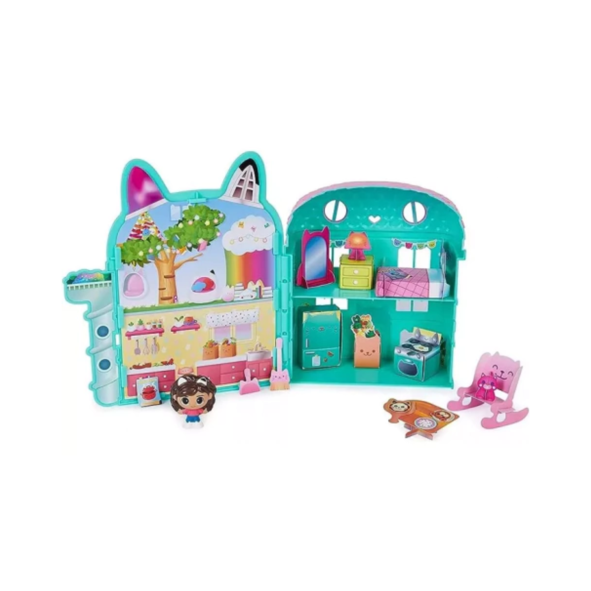 ¡Llevá la magia de la Casa de Muñecas de Gabby a donde quiera que vayas con esta Mini Casa de Juego ultraportátil! Con una altura de 22,2 cm, este set compacto es perfecto para recrear las escenas favoritas del programa o inventar nuevas aventuras.