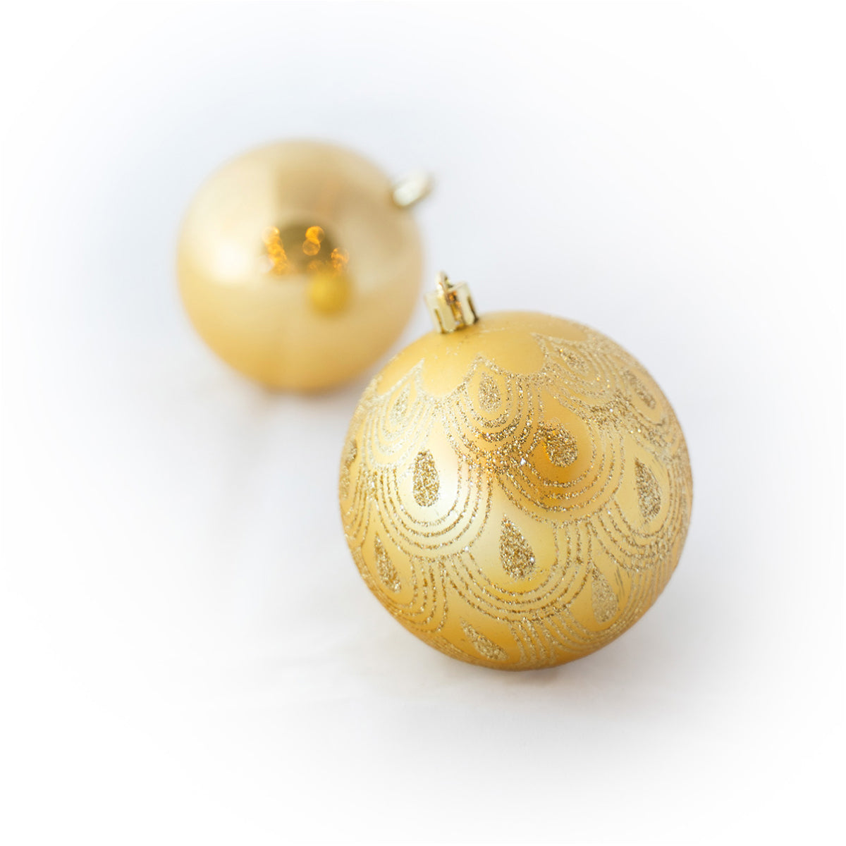 Set de 6 Bolas Perladas y Mate con Glitter de 8 cm Doradas