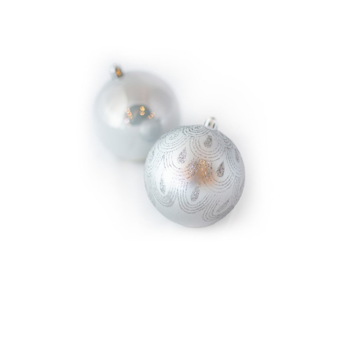 Set de 6 Bolas Perladas y Mate con Glitter de 8 cm Plateadas