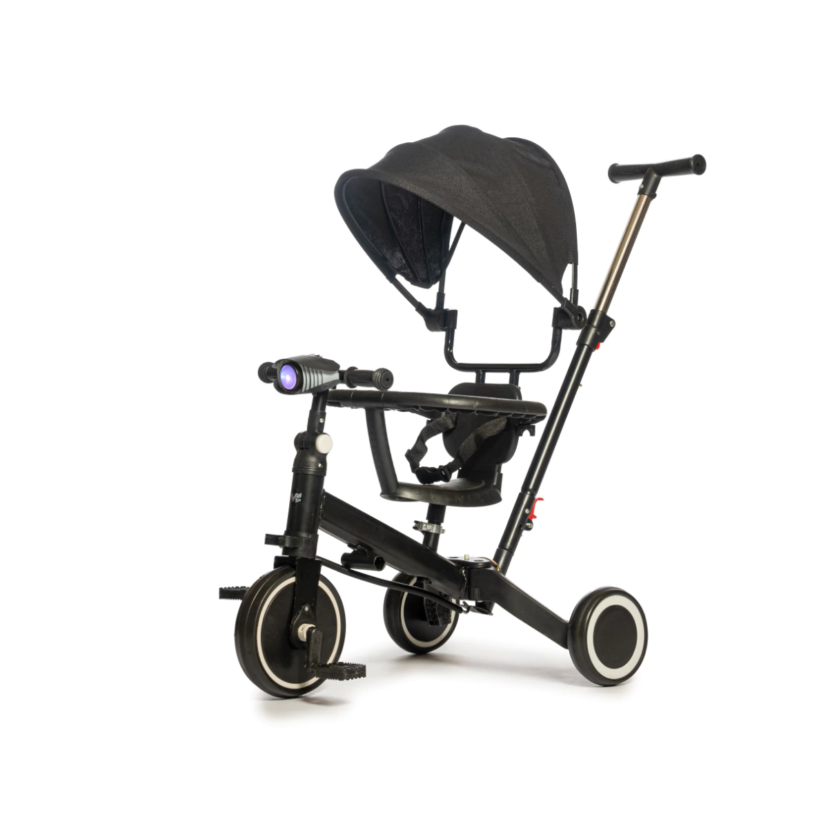 -  Con capota, luz, sonido, apoya brazos y cinturón.