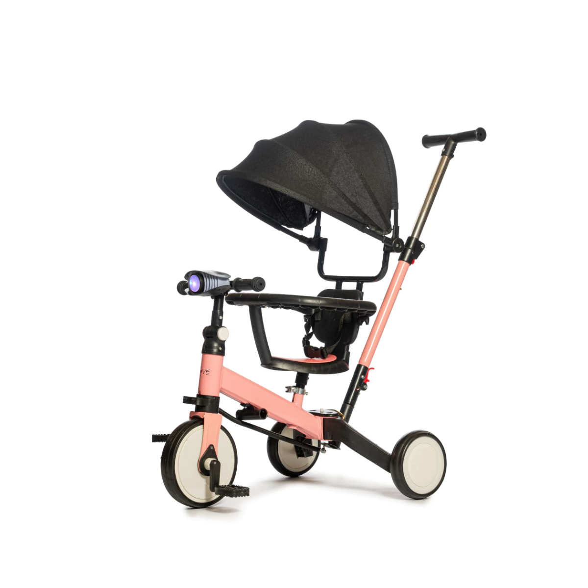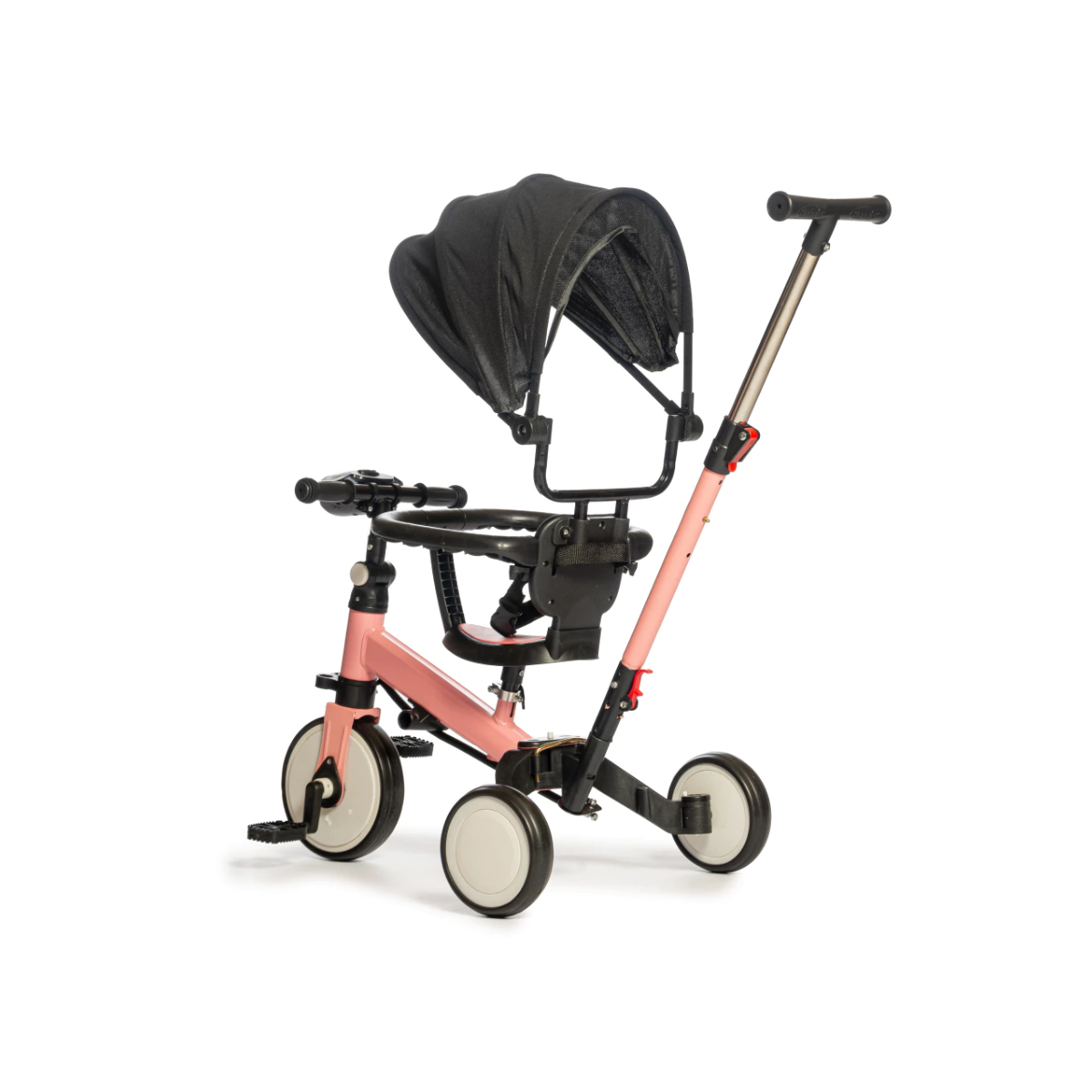 Esta Camicleta 2 en 1 se transforma en triciclo y viene equipada con capota, luces y sonidos para alegrar el paseo. Su apoyabrazos y cinturón de seguridad ofrecen protección adicional mientras el niño disfruta.
