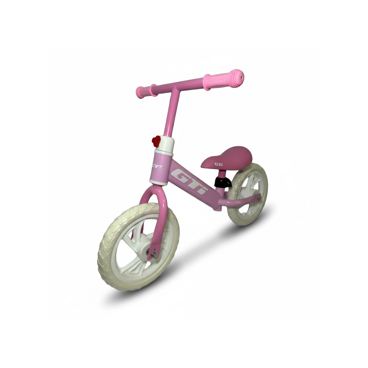 Bicicleta de equilibrio sin pedales con rueda R12 en color rosa. Ayuda a los niños a desarrollar el equilibrio y la coordinación antes de pasar a una bicicleta tradicional.