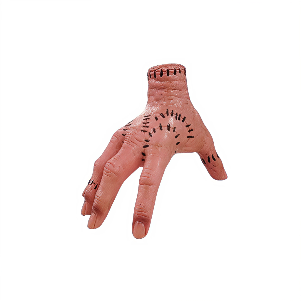 - Diseño: Mano inspirada en el personaje de Merlina/Wednesday (La Familia Addams), con detalles de cicatriz.