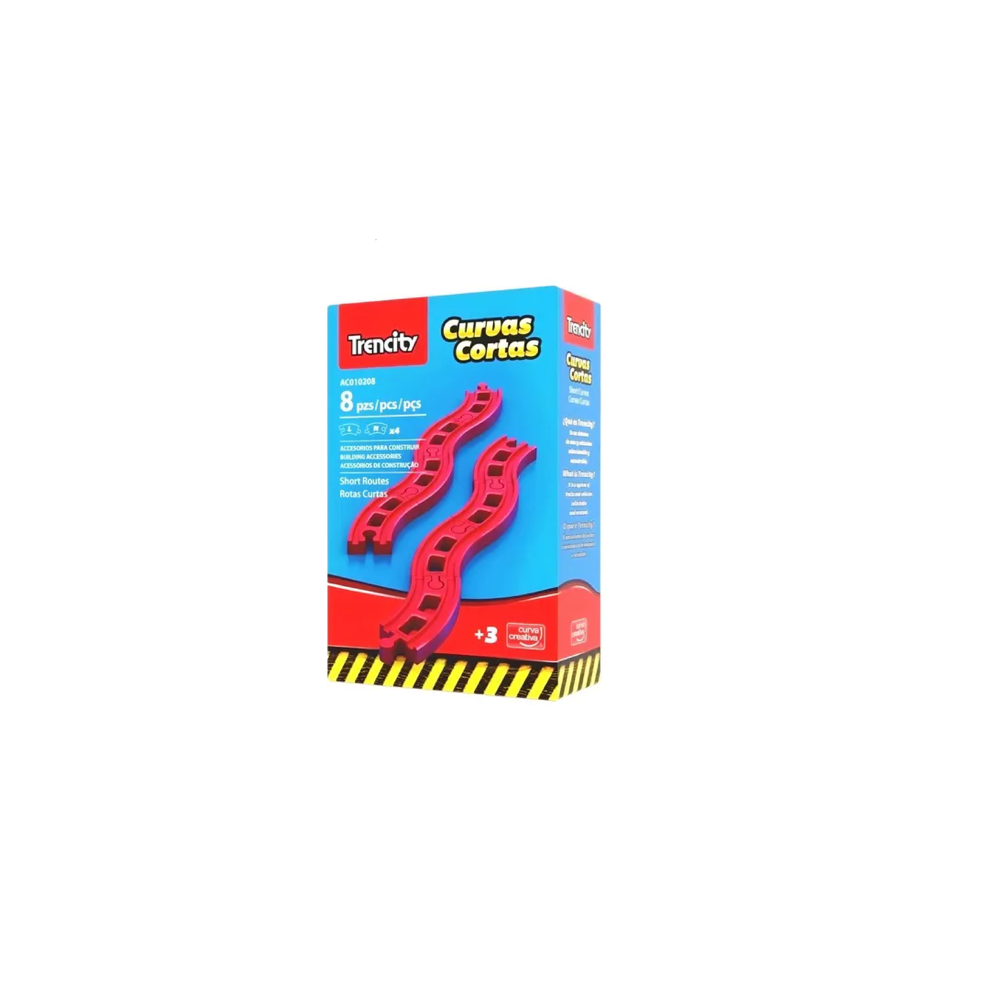 Descubre el emocionante mundo de Trencity con el kit de Curvas Cortas para trenes, que incluye 8 piezas premium diseñadas para ampliar tu pista y llevar la diversión al siguiente nivel.