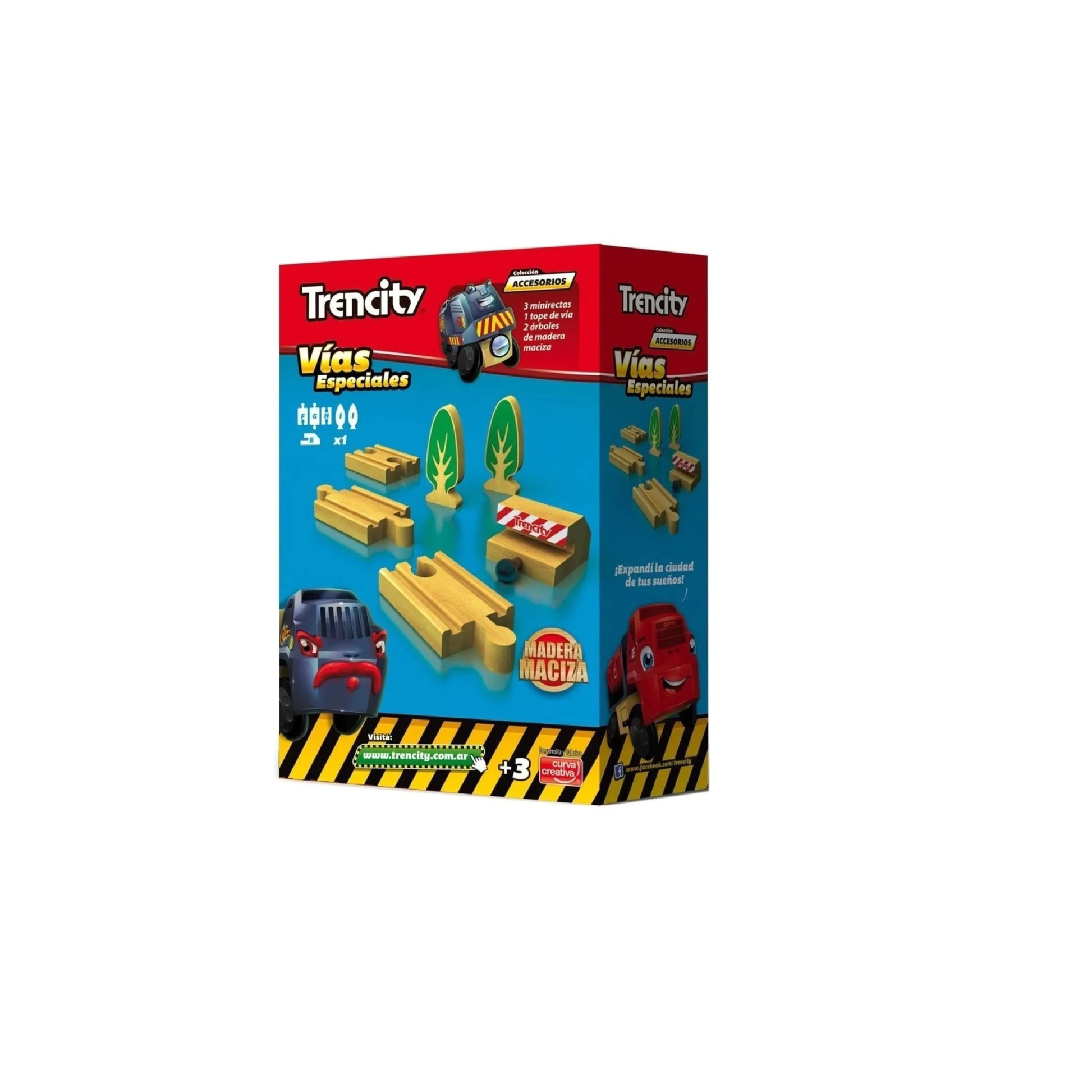 Juego con sistema de vías y vehículos coleccionable con piezas encastrables. El sistema de vías y accesorios Trencity está construido con materiales de alta calidad. Pemite armar infinitas variantes. Material: madera maciza.
