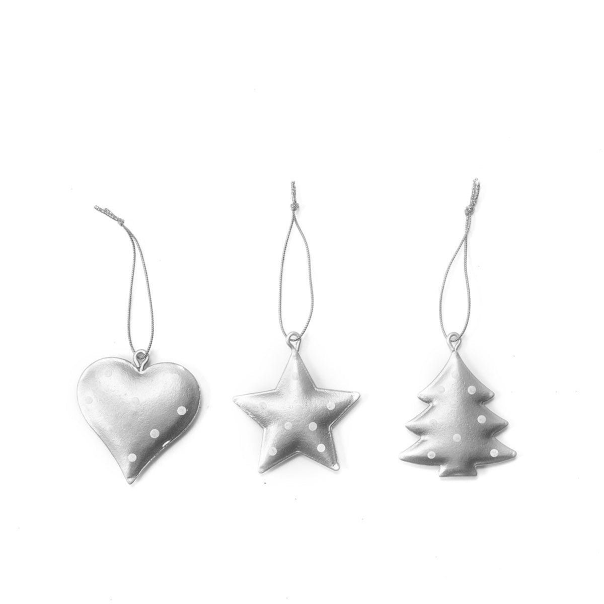 Decoración Navidad Adornos Plateados Por 3 Unidades - Formas Surtidas