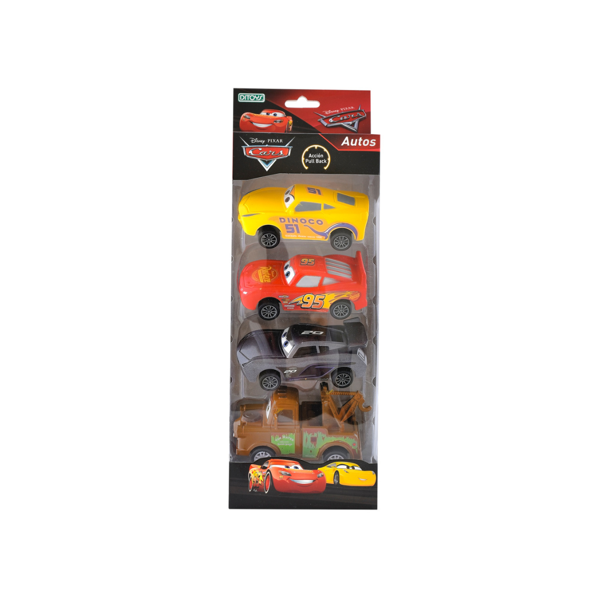 Un set de 4 de autos de Cars para realizar las mejores carreras y desafios de máxima velocidad.