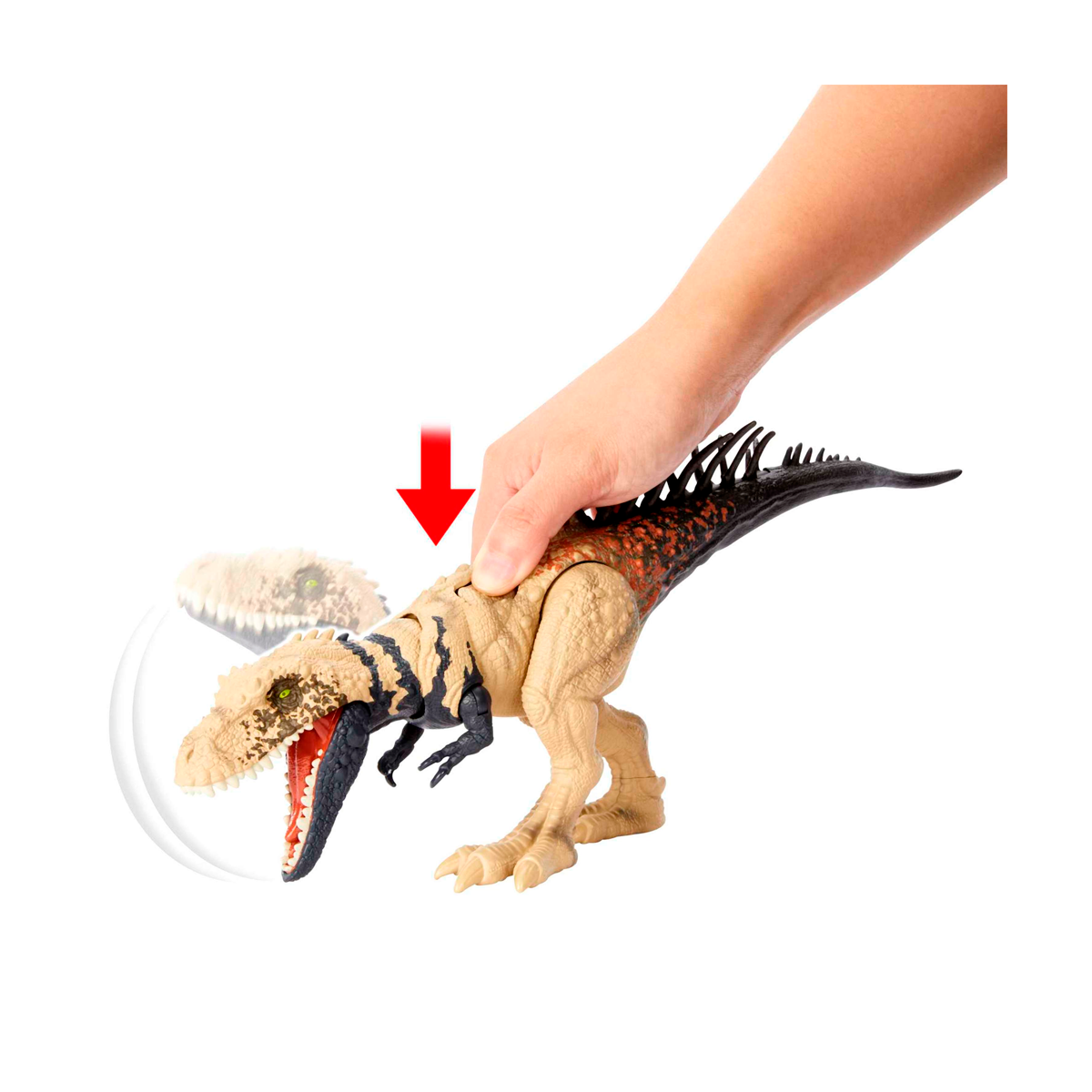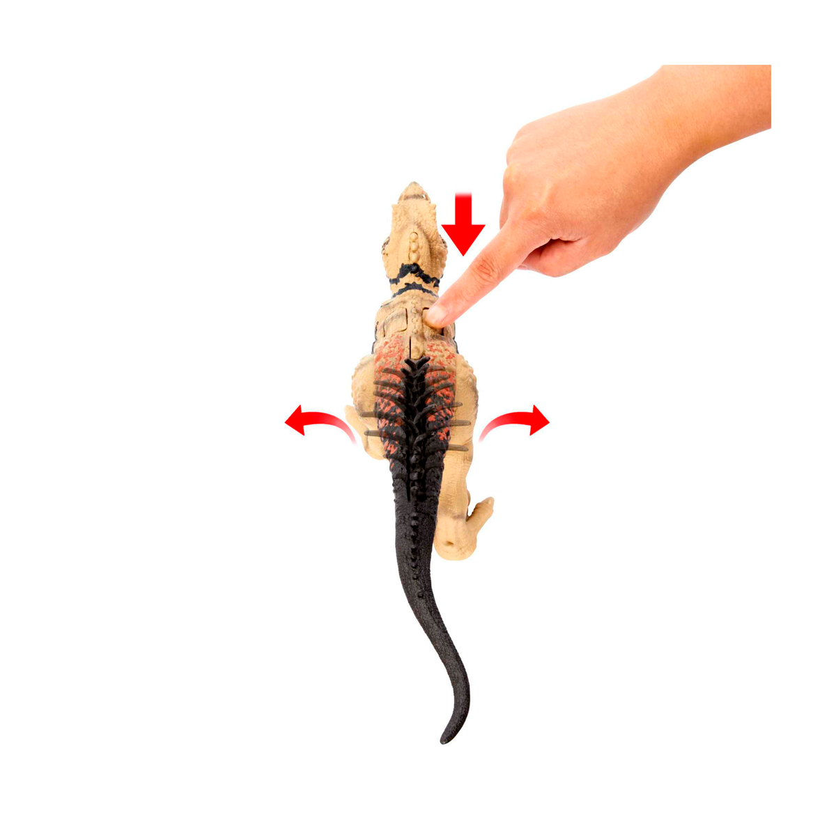 Esta figura de dinosaurio tiene un movimiento de seguimiento de lado a lado y viene en un tamaño impresionante, alrededor de 35 centímetros de largo y 15 centímetros de alto, con un espectacular movimiento de ataque exclusivo de las especies de dinosaurios.