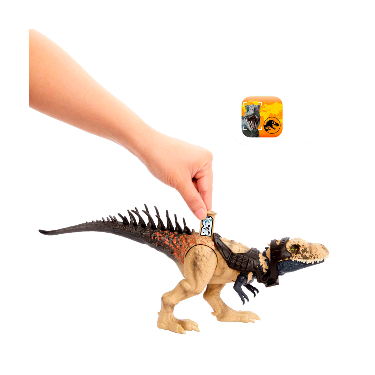 Escanea el código de seguimiento oculto en la aplicación gratuita Jurassic World Play con un dispositivo inteligente compatible (Android o iOS, no incluido) para desbloquear experiencias de realidad aumentada y juegos tremendamente divertidos.