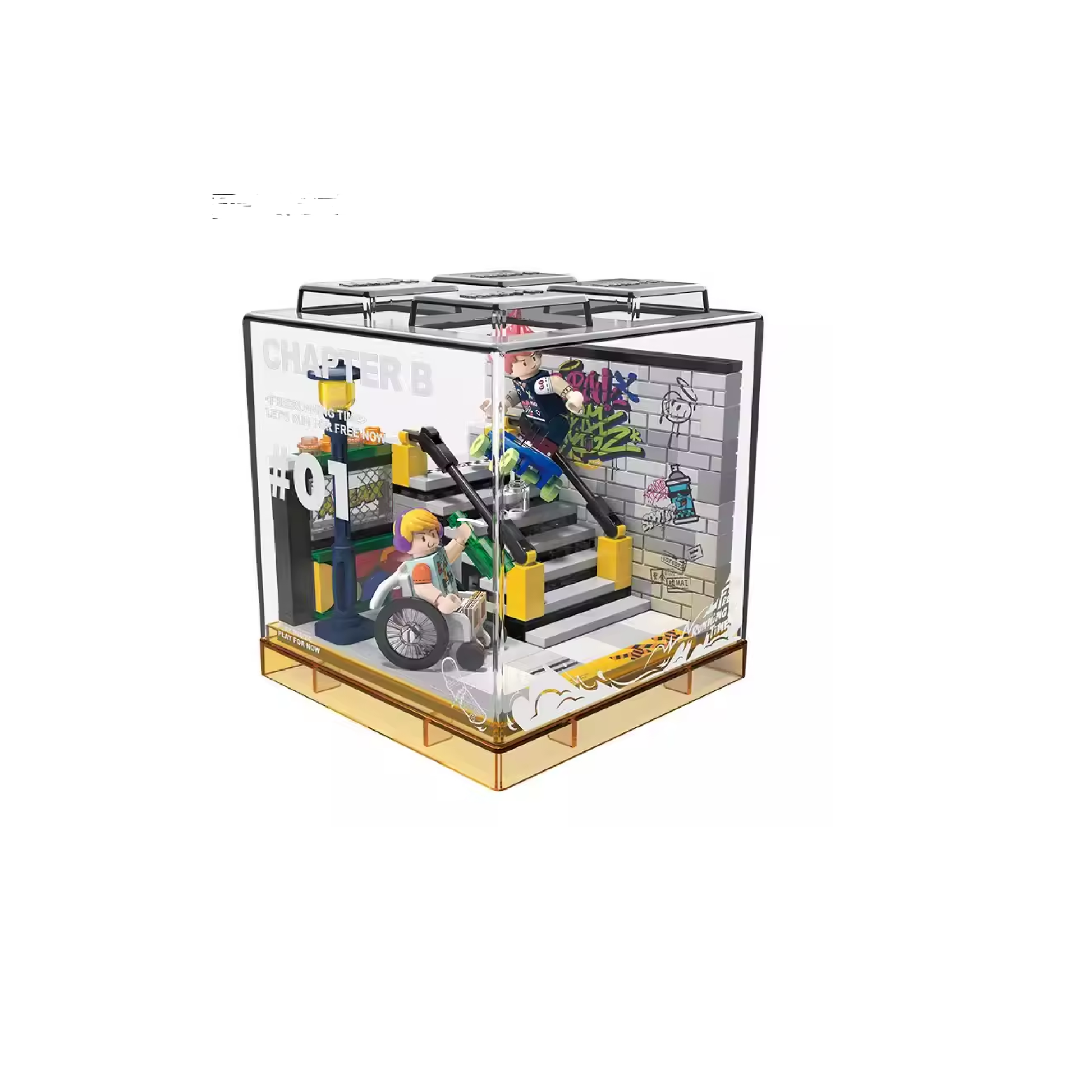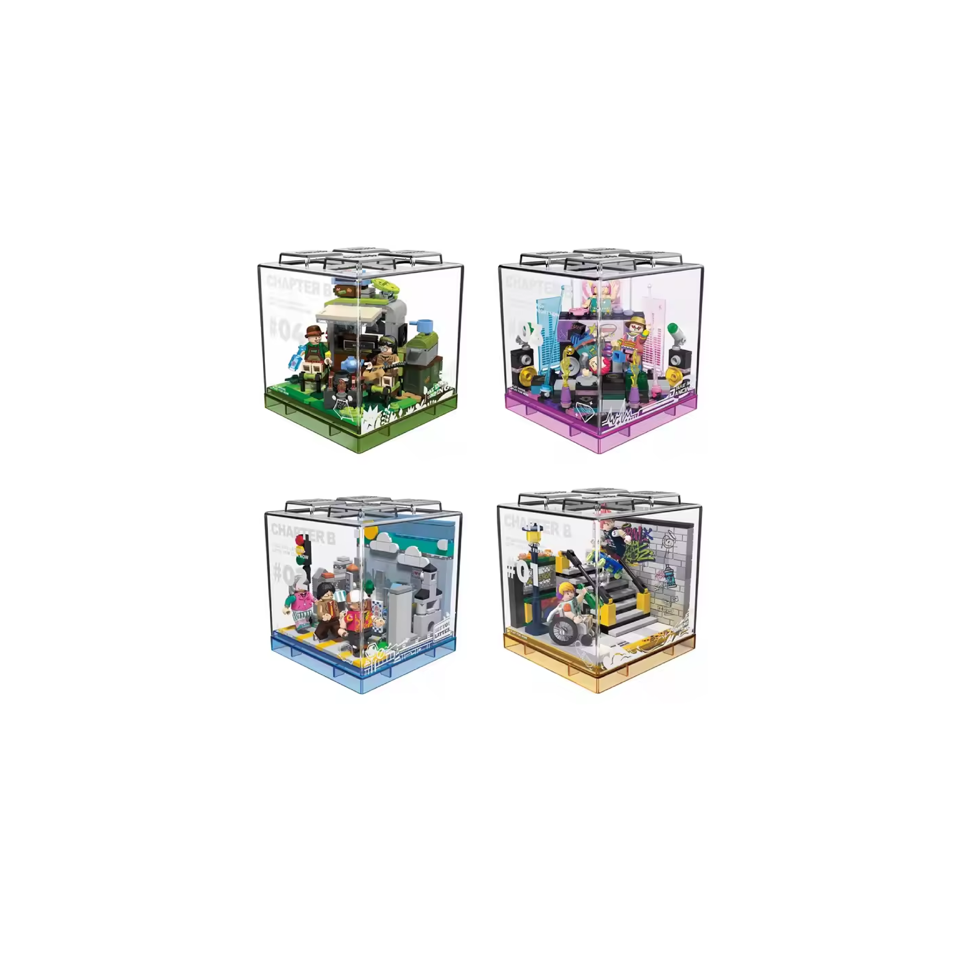 Contiene una caja de acrílico y varias piezas que pueden ser combinadas a gusto.