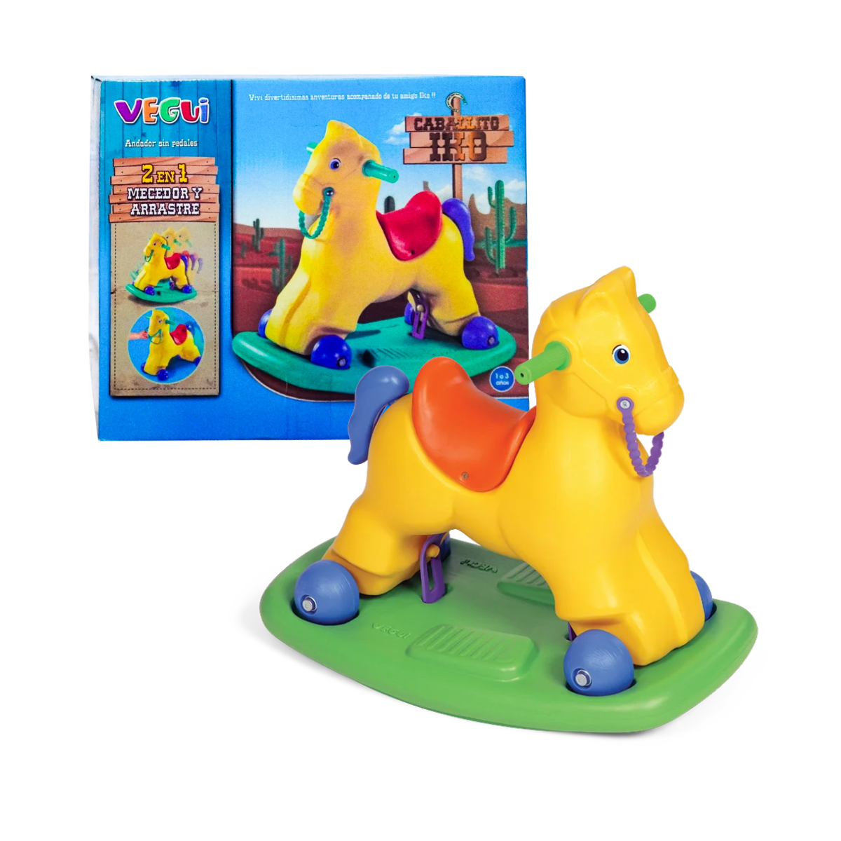 Caballito 2 en 1: mecedor y arrastre. Incluye base.