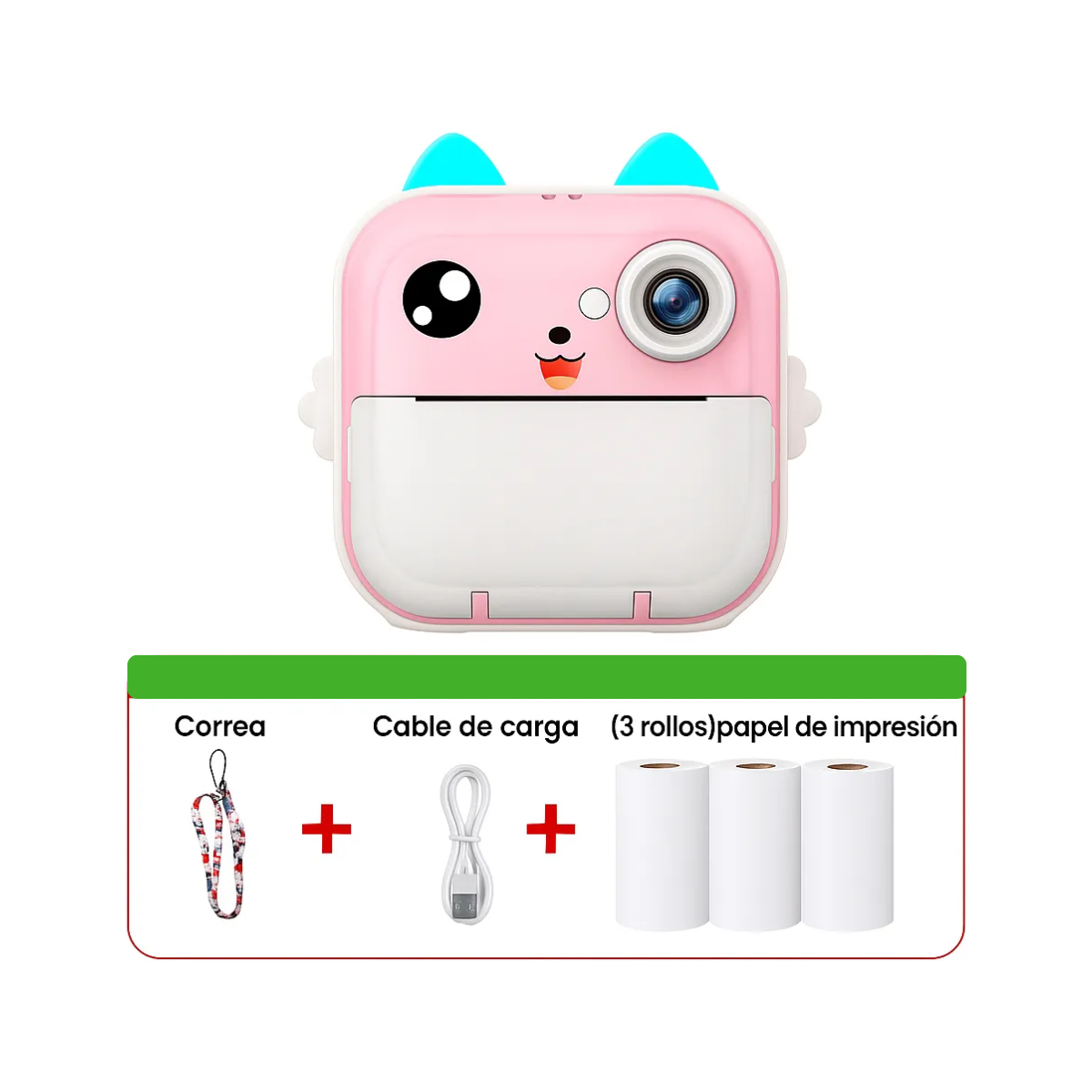 ¡Capturá y conservá cada momento especial con esta cámara instantánea infantil con impresora! Diseñada especialmente para niños y niñas, combina diversión y tecnología, permitiendo tomar fotos y obtener impresiones de alta calidad en papel al instante. Su diseño en forma de gatito, liviano y fácil de usar, la convierte en el regalo perfecto para pequeños fotógrafos.