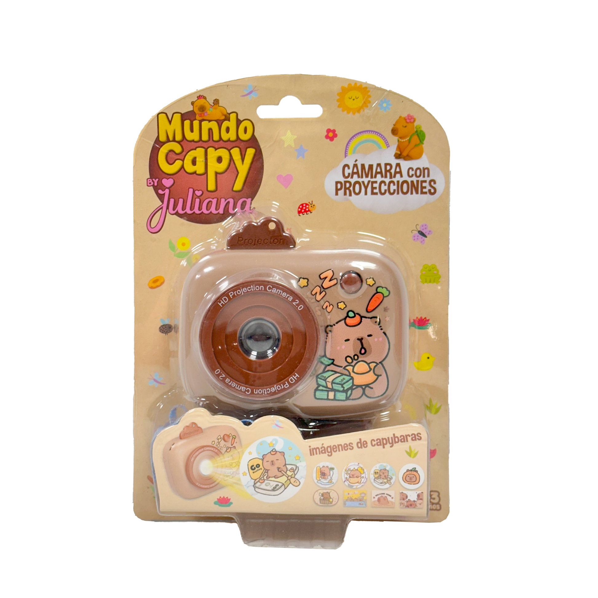 ¡El mundo de la fotografía se vuelve mágico con esta cámara con proyecciones del nuevo Mundo Capy de Juliana! Este juguete no solo se ve como una cámara de verdad, sino que también proyecta 8 imágenes increíbles de los personajes más adorables de la colección. Es el accesorio perfecto para despertar la imaginación de los futuros fotógrafos y narradores de historias, transformando cualquier pared en una pantalla de cine personal.