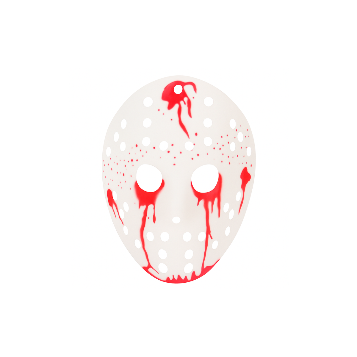 - Diseño: Máscara de Jason (personaje de terror) con detalles ensangrentados.