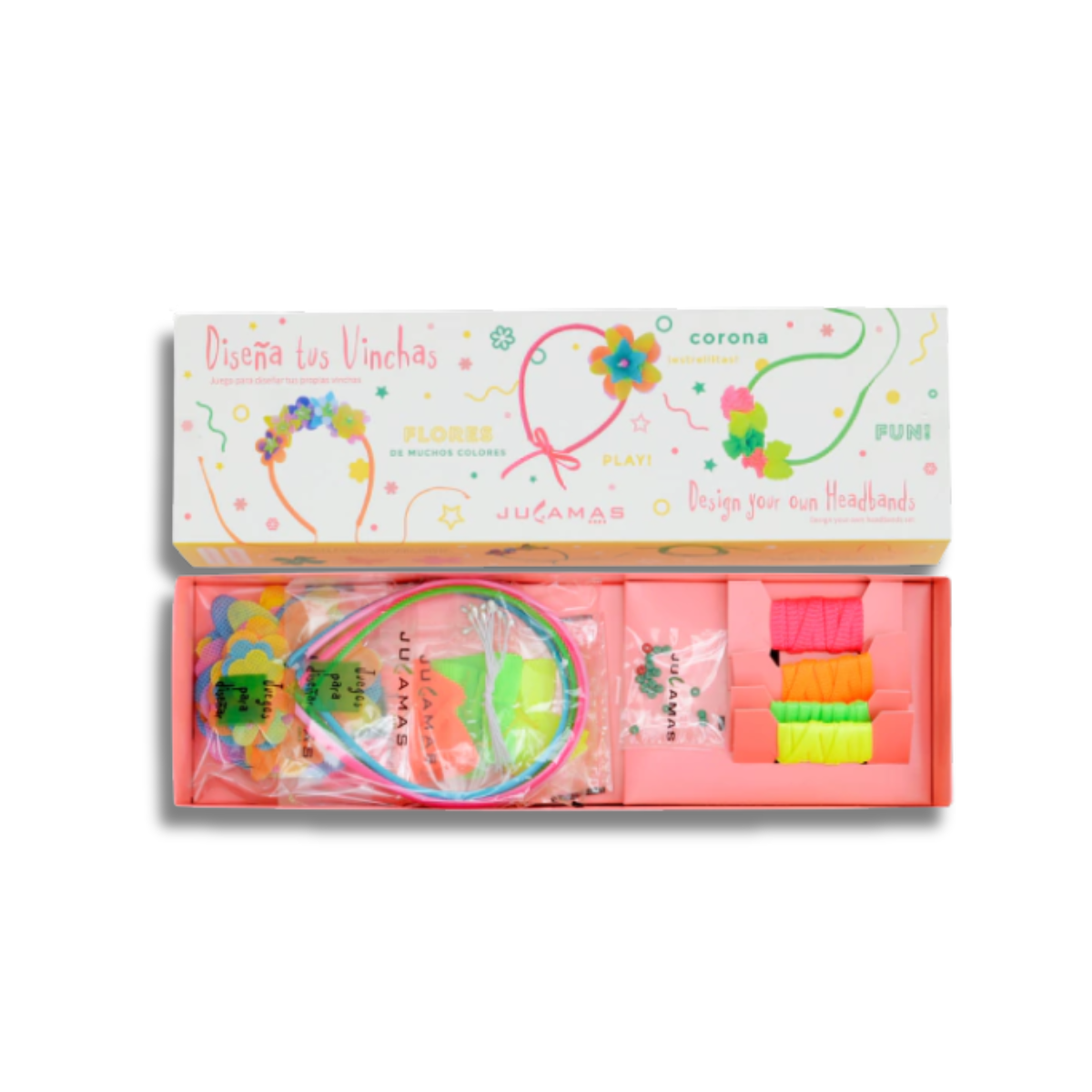 ¡Ponele color y estilo a tu pelo con este kit para diseñar tus propias vinchas! Es la excusa perfecta para una tarde de amigas, donde la moda y la creatividad se unen para crear accesorios únicos y divertidos.