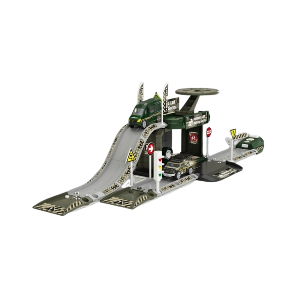 Prepárate para la acción con nuestro Estacionamiento Militar Para Armar. Este divertido Playset incluye un vehículo y un estacionamiento armable.