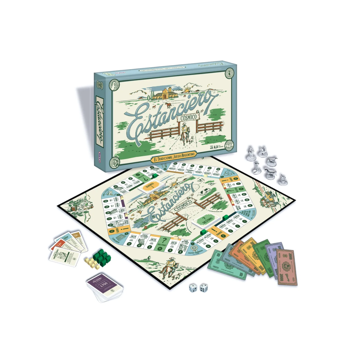 Esta edición limitada rescata la esencia del campo, el gaucho, el caballo, la yerba mate y la vida rural, combinándola con la estética minimalista y elegante que caracteriza a Cósmico. Cada elemento —tablero, billetes, cartas y estancias— fue ilustrado a mano por el diseñador de la icónica yerba Cósmico. Un objeto cultural, artístico y profundamente argentino.