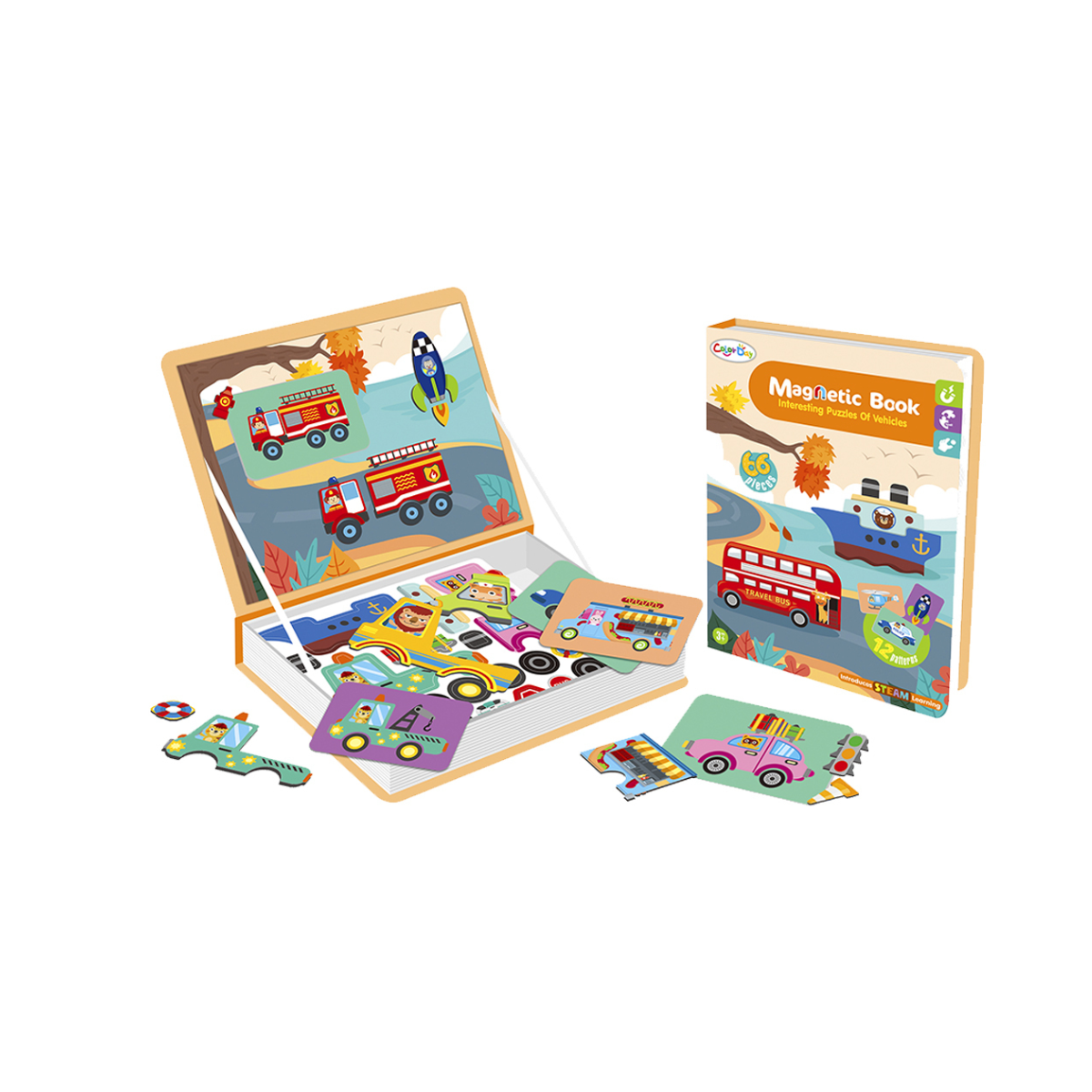 ¡Prepárate para horas de diversión con este Libro Magnético de Vehículos! Con él, los niños podrán dejar volar su imaginación y crear sus propios vehículos con 66 piezas magnéticas. Además de las piezas, el libro incluye 12 tarjetas con ideas para replicar. Con un diseño compacto, es el compañero perfecto para llevar a cualquier lugar. Se recomienda para niños de más de 3 años.