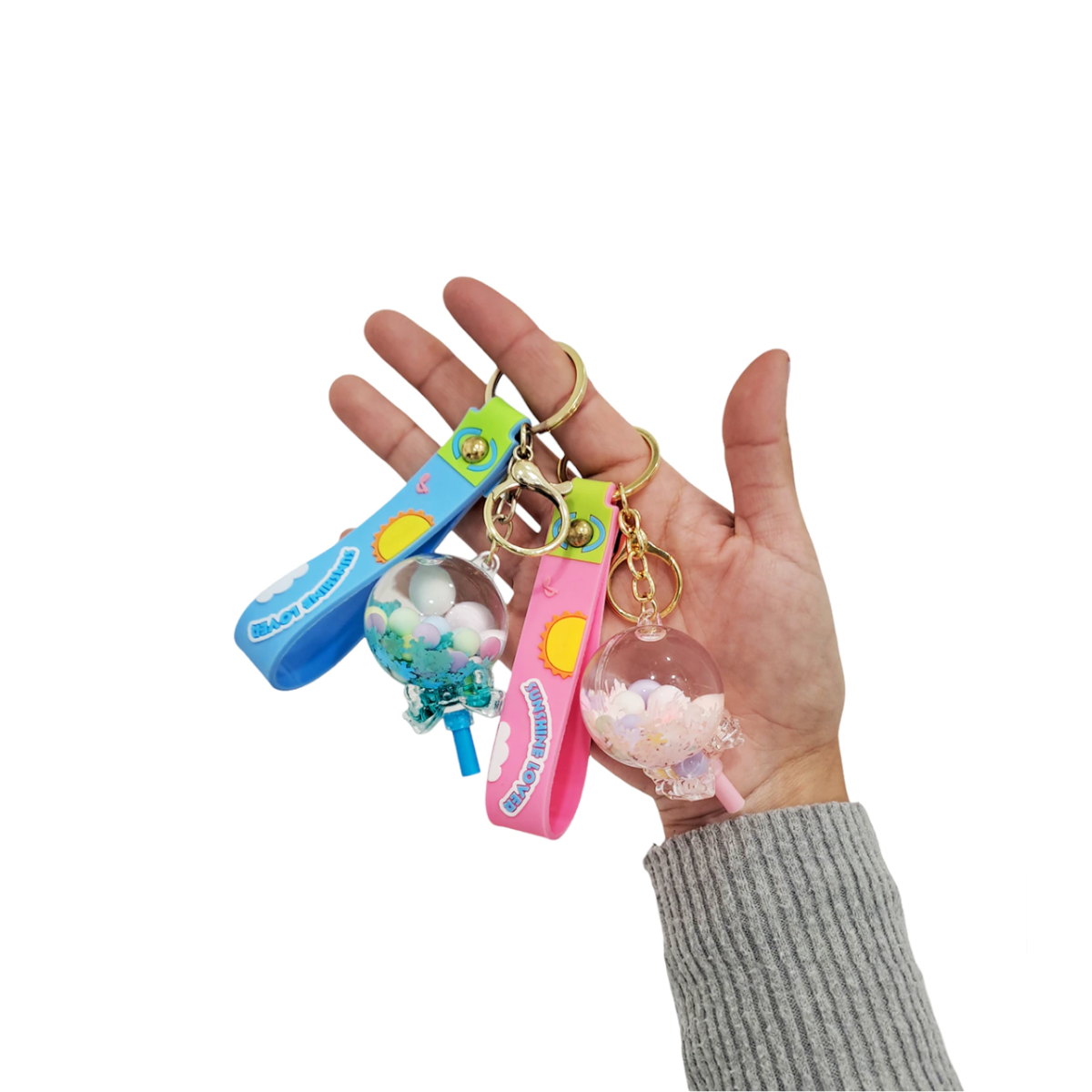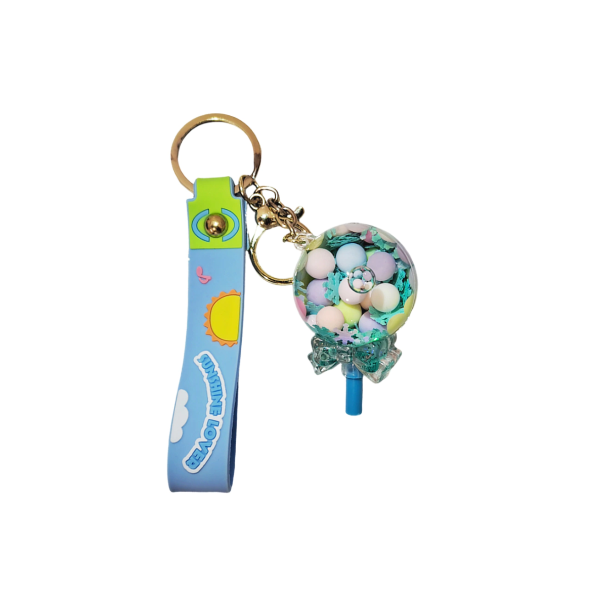 - Diseño Único: Un llavero con un adorable diseño de caramelo, con glitter y perlitas en su interior.