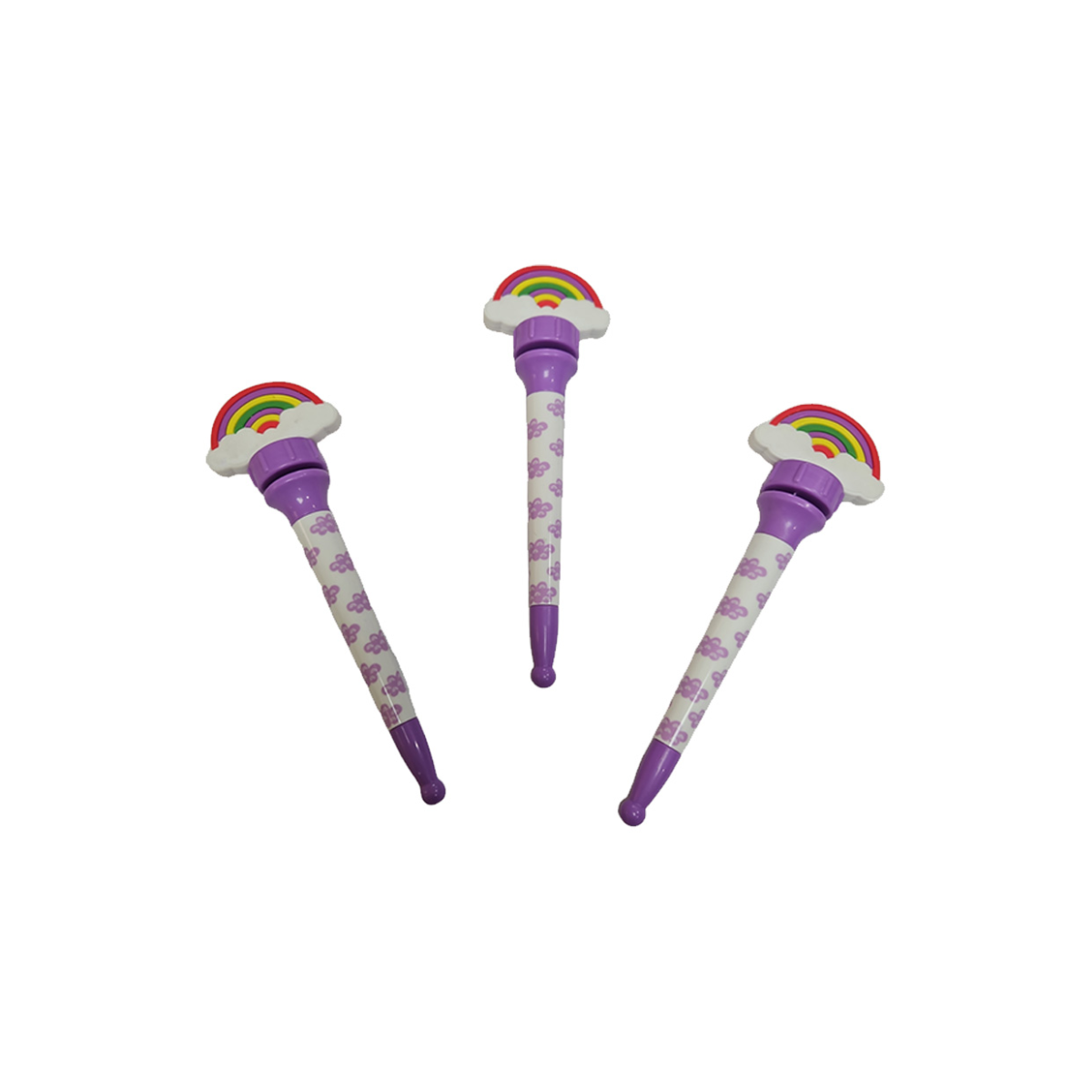 - Diseño Divertido: Un bolígrafo con un diseño colorido y un arcoíris que gira sobre su eje.
