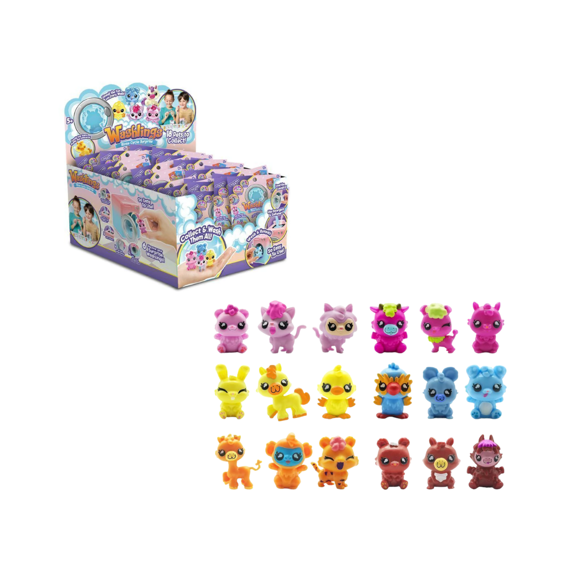 Los Washling Individual son juguetitos que cambian de color cuando se lavan. Este conjunto ofrece personajes divertidos que se transforman con agua y brindan sorpresa.