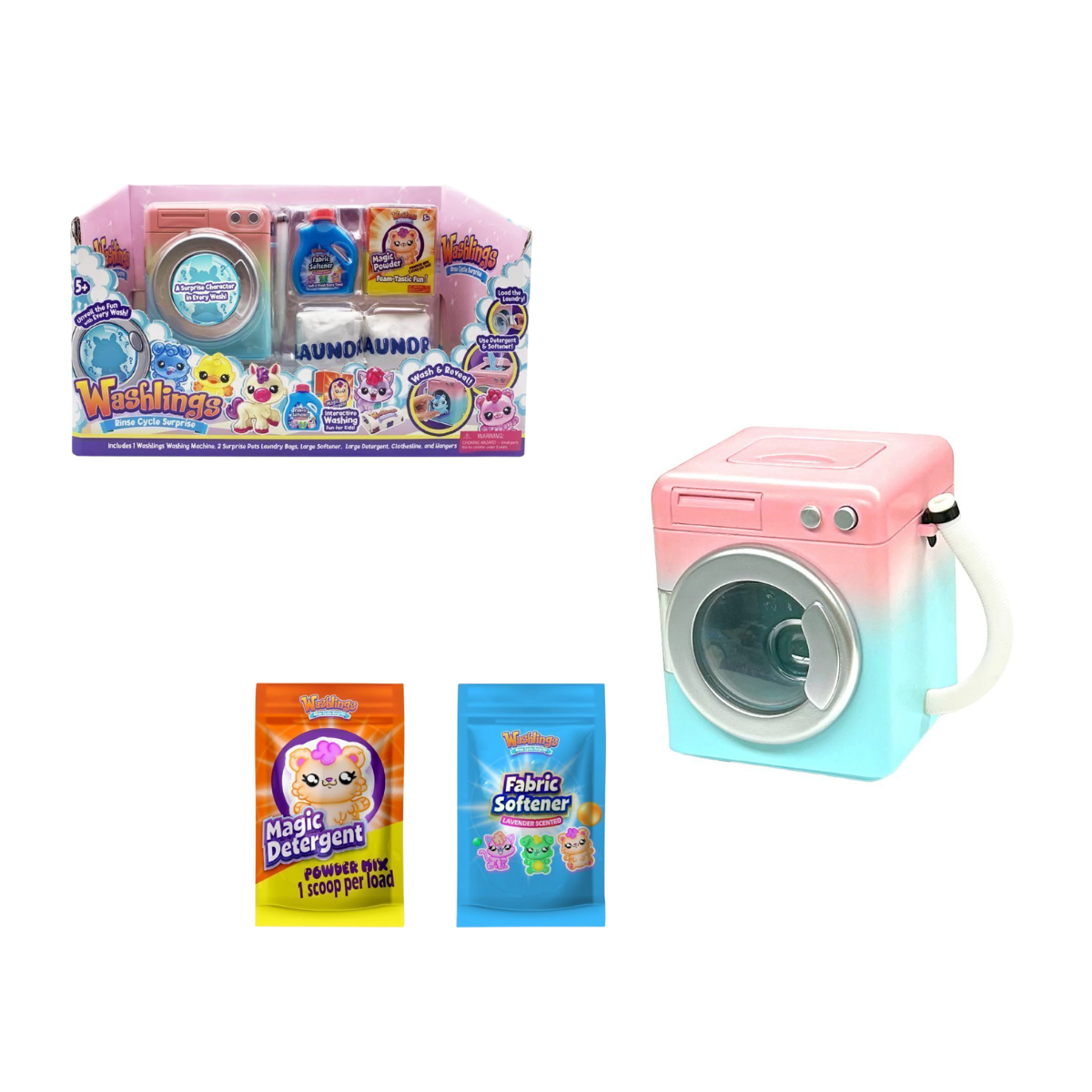 ¡Washlings es la emocionante colección de Mascotas Misteriosas que viene en un adorable empaque de lavadora! Cada paquete es una sorpresa individual que te permite expandir tu colección de adorables y diminutas mascotas.