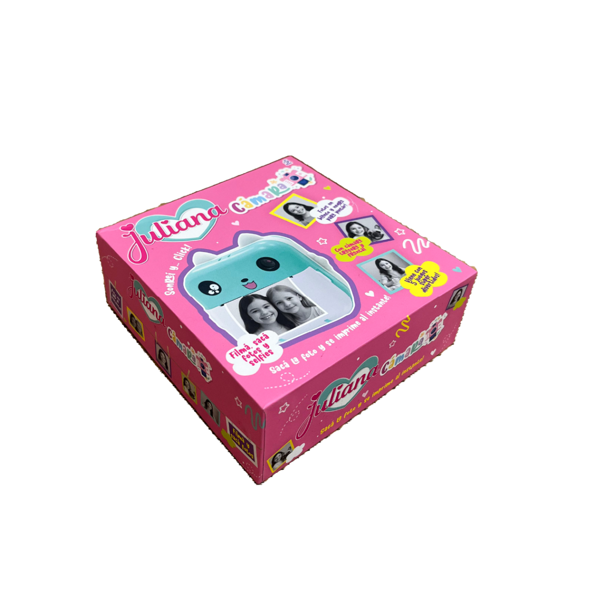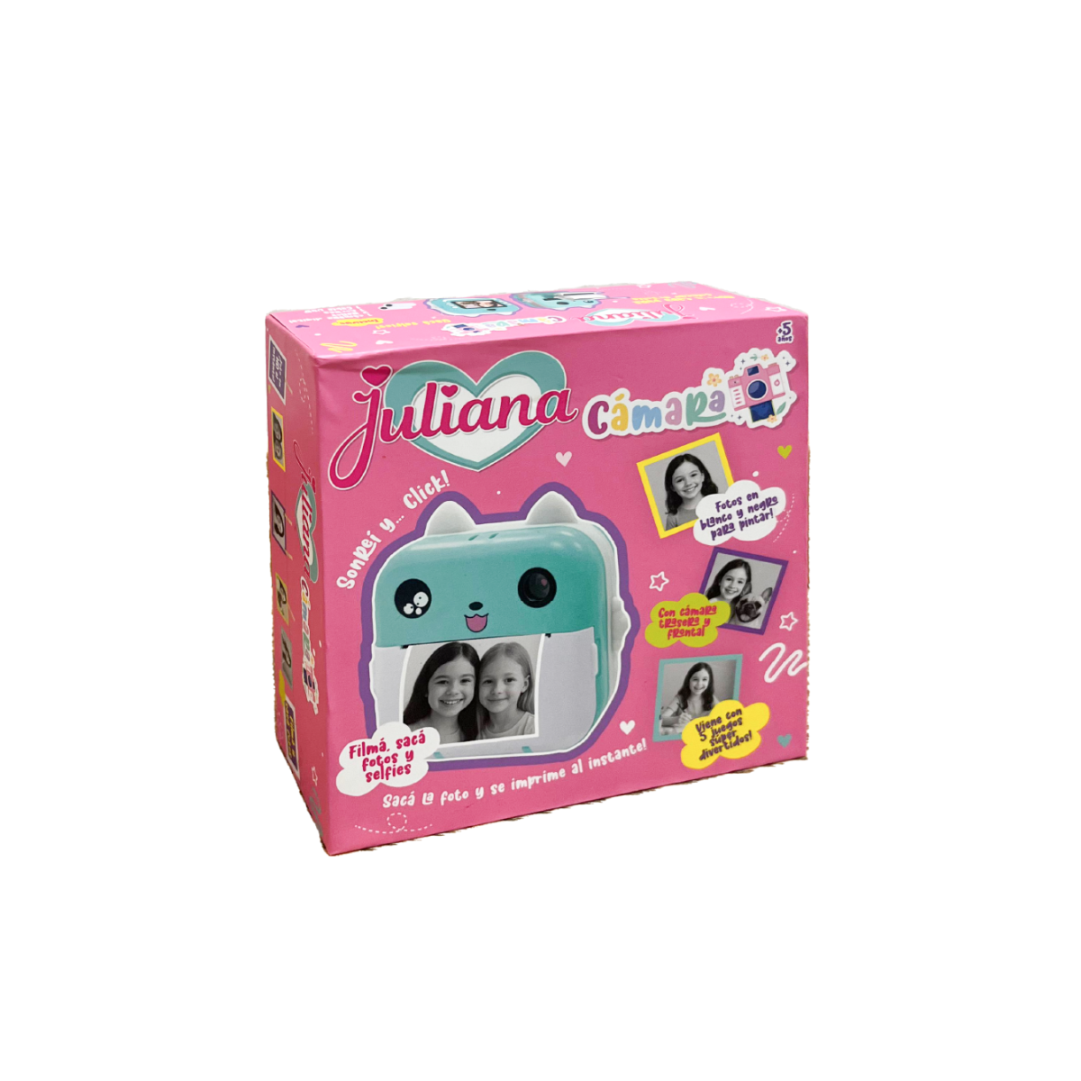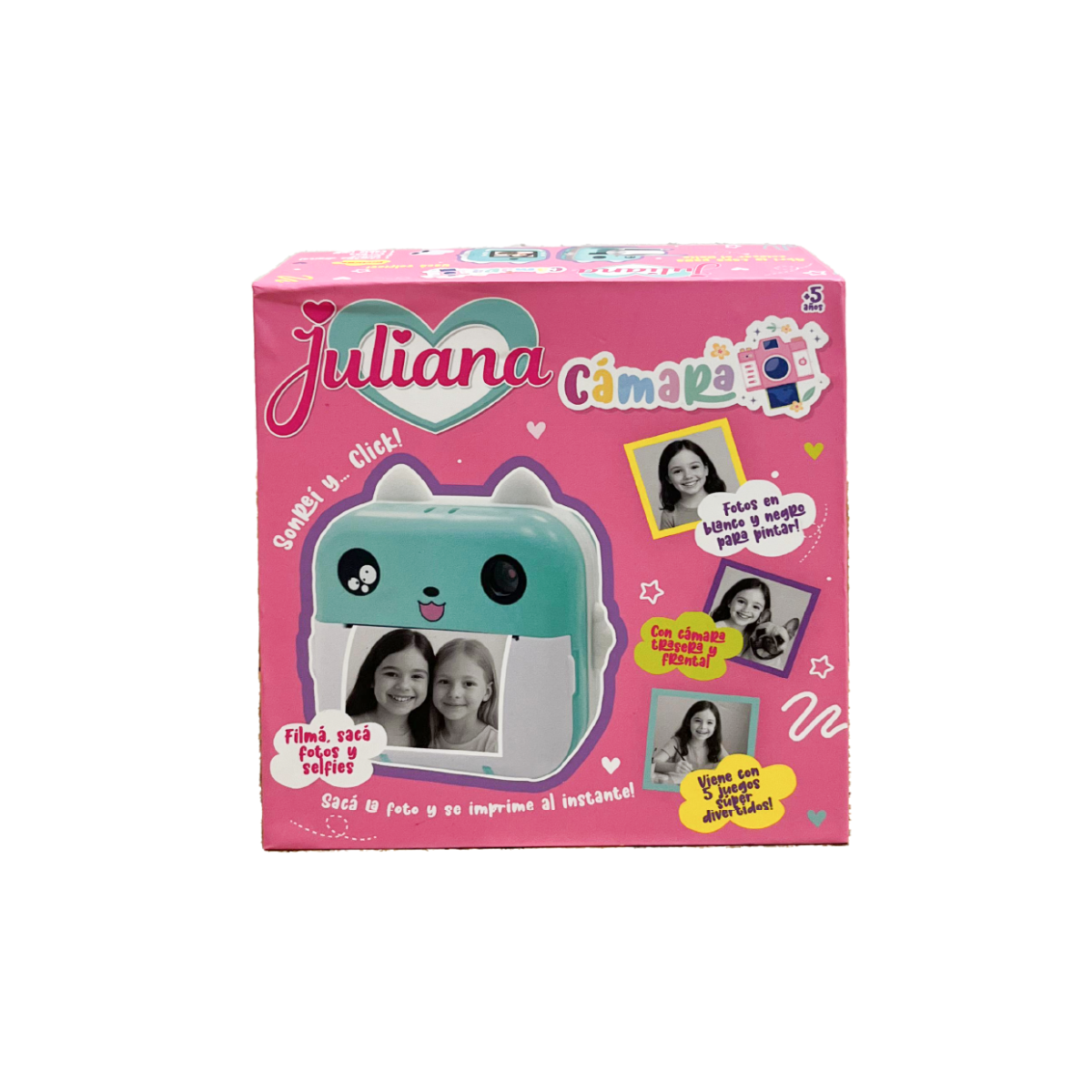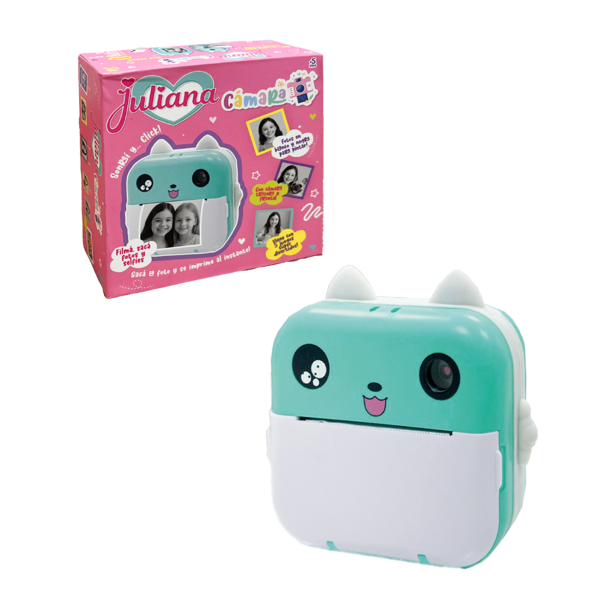 ¡Sonreí y clic! La Cámara Instantánea Digital de Juliana con un adorable diseño de gatito te permite capturar tus momentos y ¡verlos impresos al instante en HD! Esta cámara digital saca fotos y selfies (gracias a su cámara frontal), y también te permite filmar. Incluye una memoria para guardar todos tus recuerdos y 5 juegos súper divertidos para el entretenimiento. Las fotos se imprimen en blanco y negro, ¡listas para que las pintes y decores como más te guste!