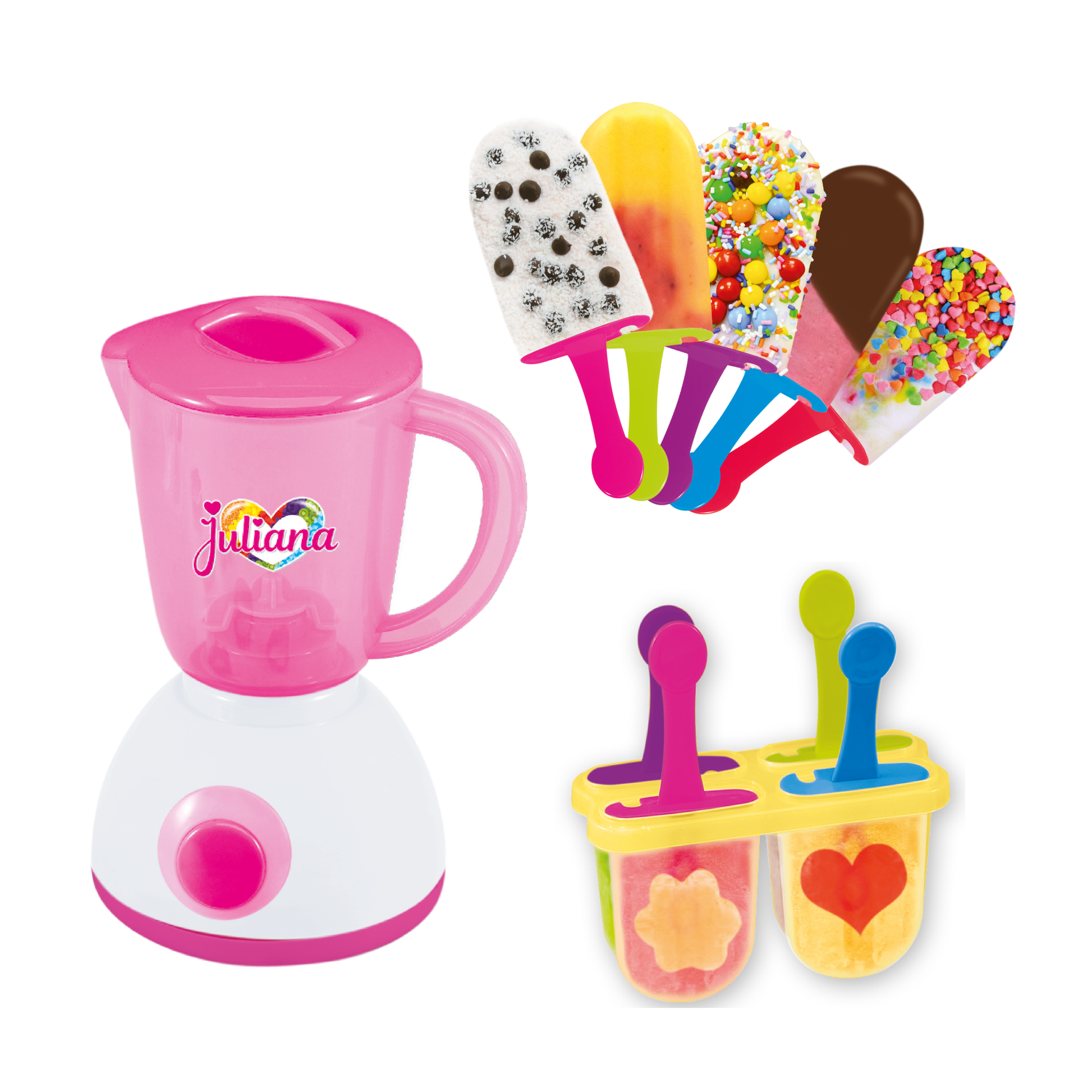 Incluye: 1 licuadora, 4 moldecitos para helado, 6 formitas y un recetario.