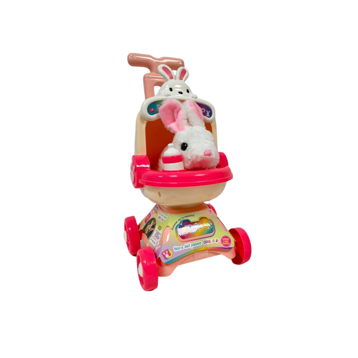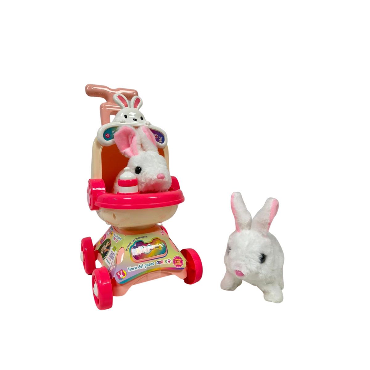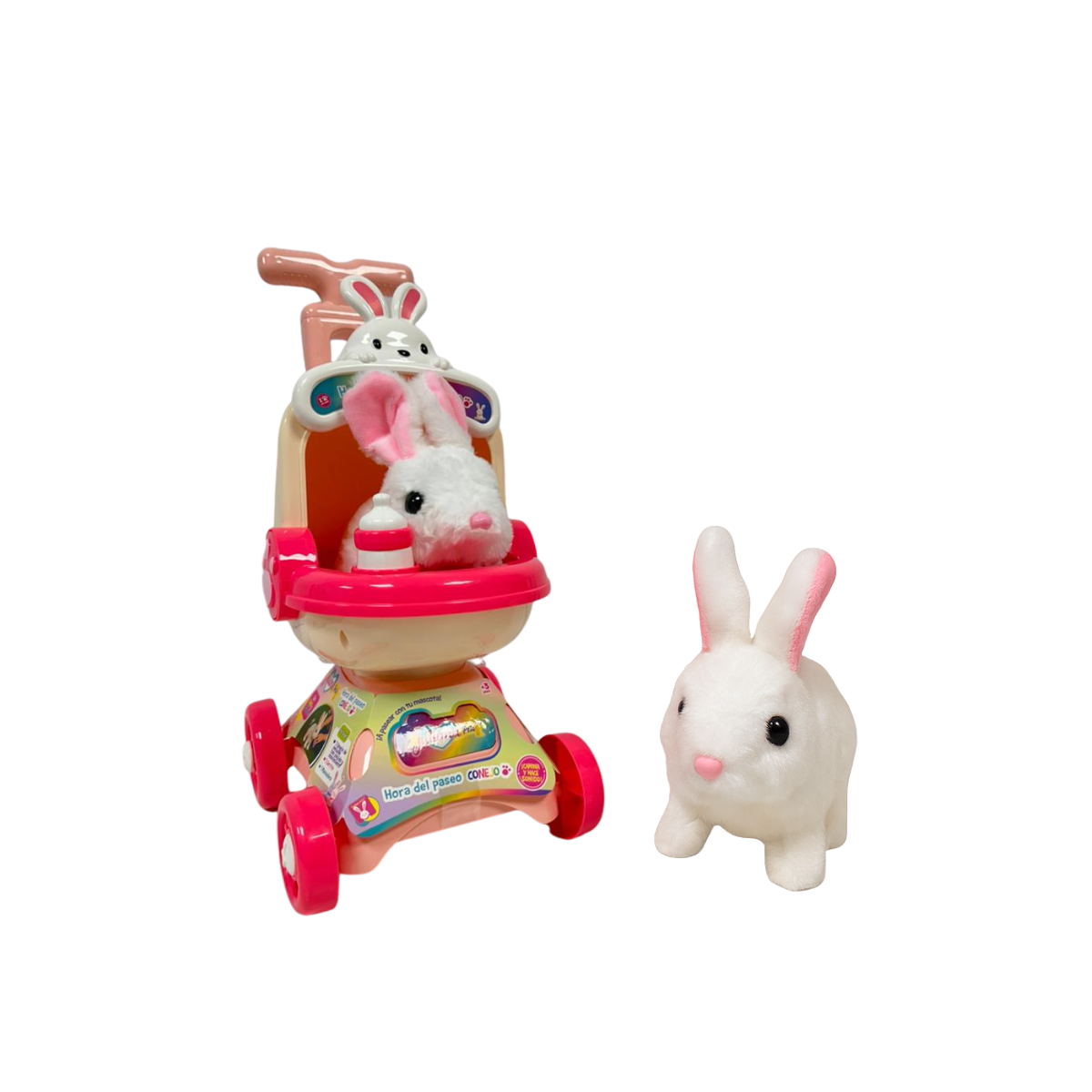 - Carrito transportador: El set incluye un carrito con ruedas para llevar al conejo a pasear.