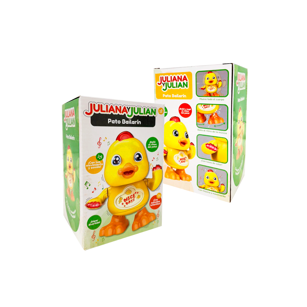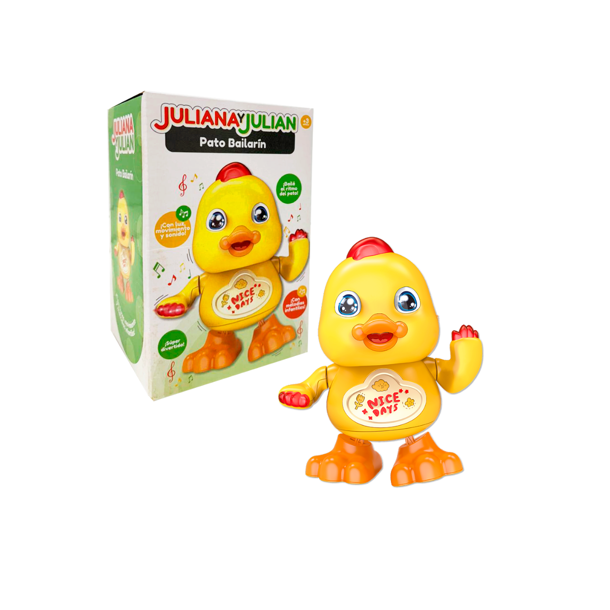 ¡El Pato Bailarín de Juliana y Julián es el compañero ideal para horas de diversión! Este adorable juguete interactivo se mueve al ritmo de la música y emite divertidas melodías, invitando a los más pequeños a bailar y jugar con él. Su diseño amigable y sus movimientos graciosos lo convierten en el centro de atención, estimulando la alegría, el movimiento y la coordinación de los niños.