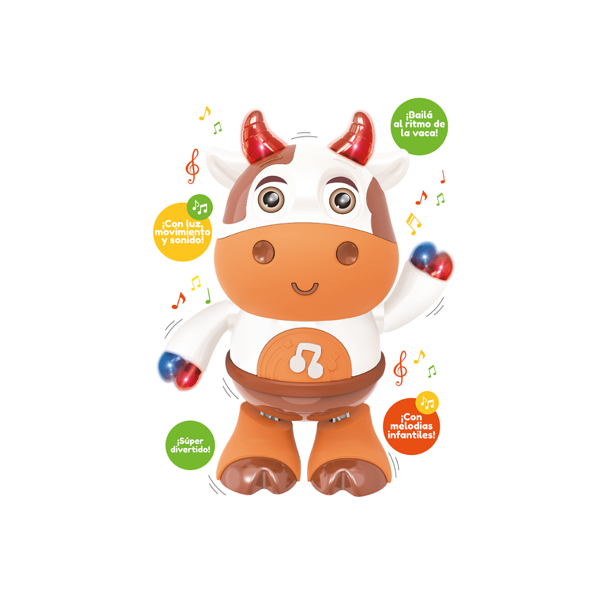 - Diseño Divertido: Su apariencia de vaca la hace un juguete amigable y simpático.
