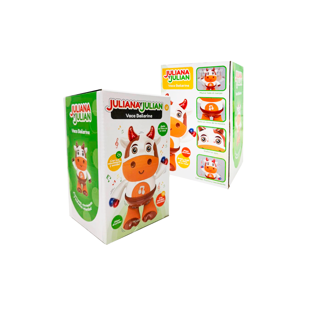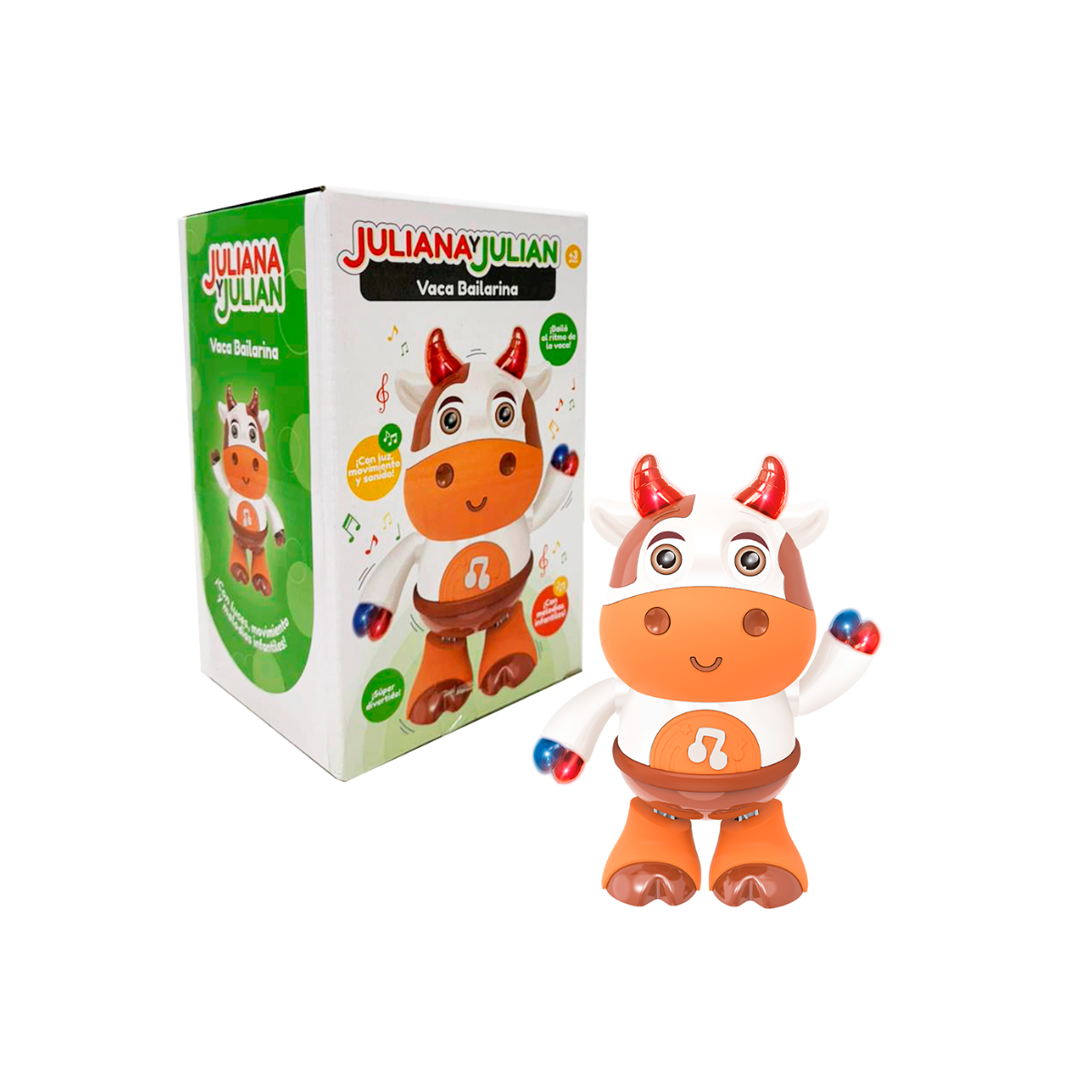 ¡A bailar con la Vaca Bailarina de Juliana y Julián! Este adorable juguete interactivo se mueve al ritmo de la música y emite divertidas melodías, invitando a los más pequeños a unirse a la fiesta. Su diseño simpático y sus movimientos graciosos lo convierten en el centro de atención, estimulando la alegría, el movimiento y la coordinación de los niños.