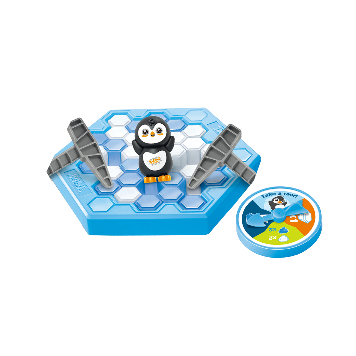 - Contenido del Set: 1 figura de pingüino, 1 base de juego, 2 martillos, 1 ruleta, 4 patas de soporte y 38 cubos de juego.