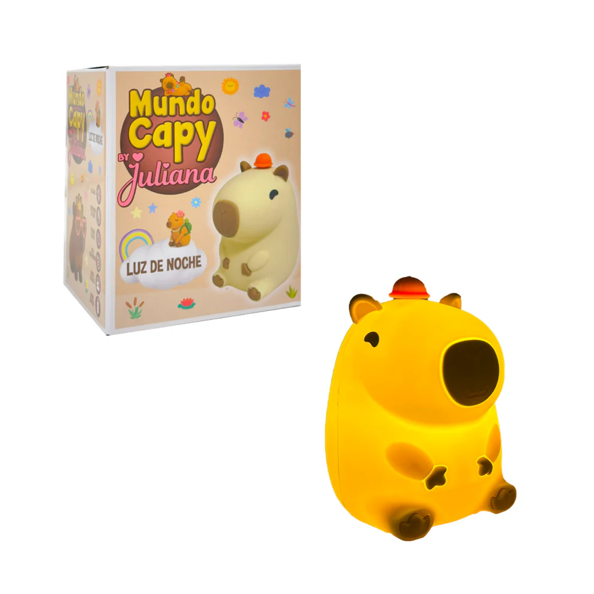 ¡Conocé a tu nuevo compañero sueños! La luz de noche de Mundo Capy es el compañero perfecto para acompañar a los más pequeños en sus dulces sueños. Con su suave y cálida iluminación, esta lamparita de noche crea un ambiente acogedor que ahuyenta los miedos y llena la habitación de paz. Su adorable diseño de capibara es el toque mágico que faltaba para hacer de la hora de dormir, un momento especial.