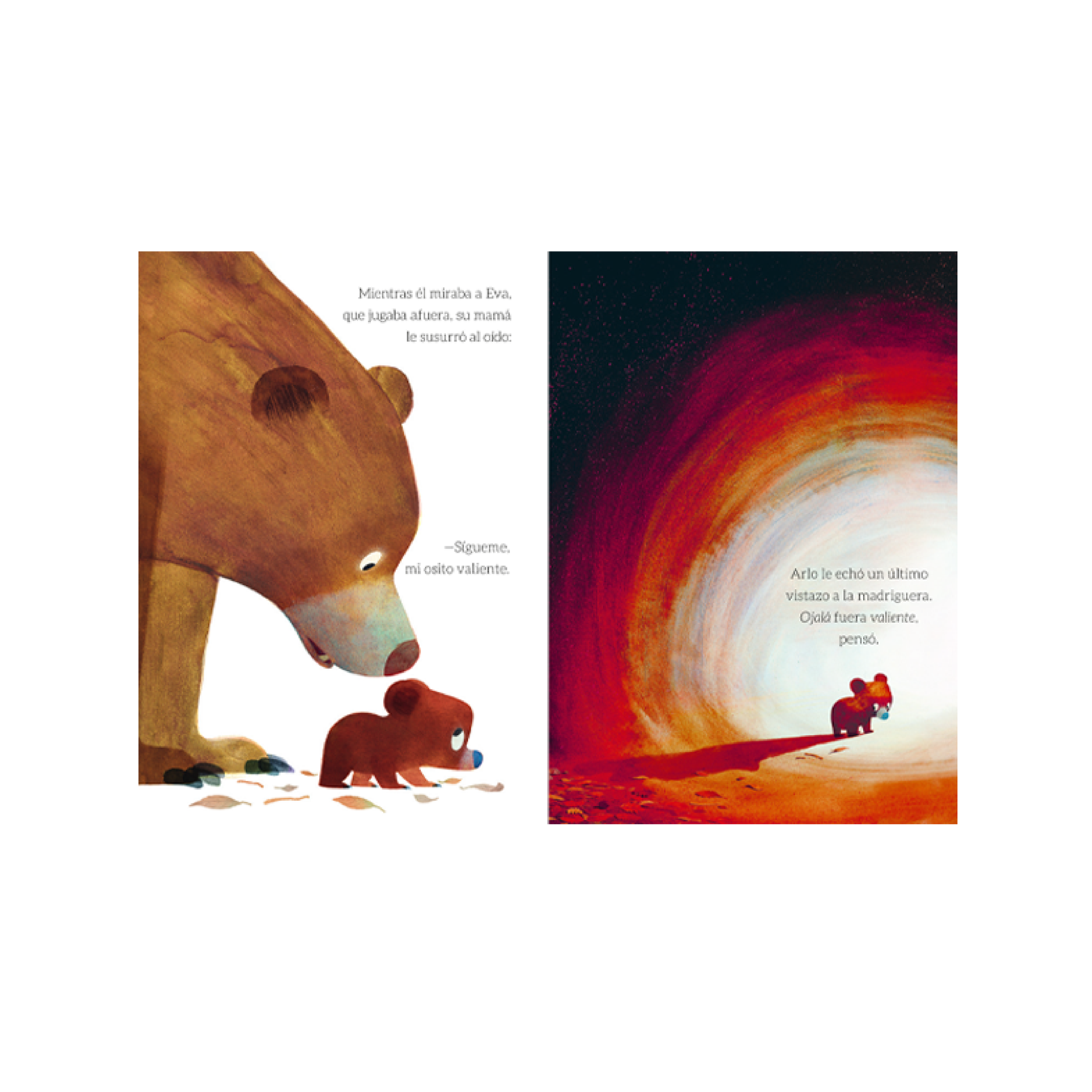 Arlo cree que no es valiente. Su hermana Eva sí lo es. Pero cuando él y su familia tienen que marcharse del hogar donde pasan el invierno, se desata una violenta tormenta. ¿Podrá Arlo encontrar el coraje necesario para ser el osito valiente que su mamá sí cree que es?