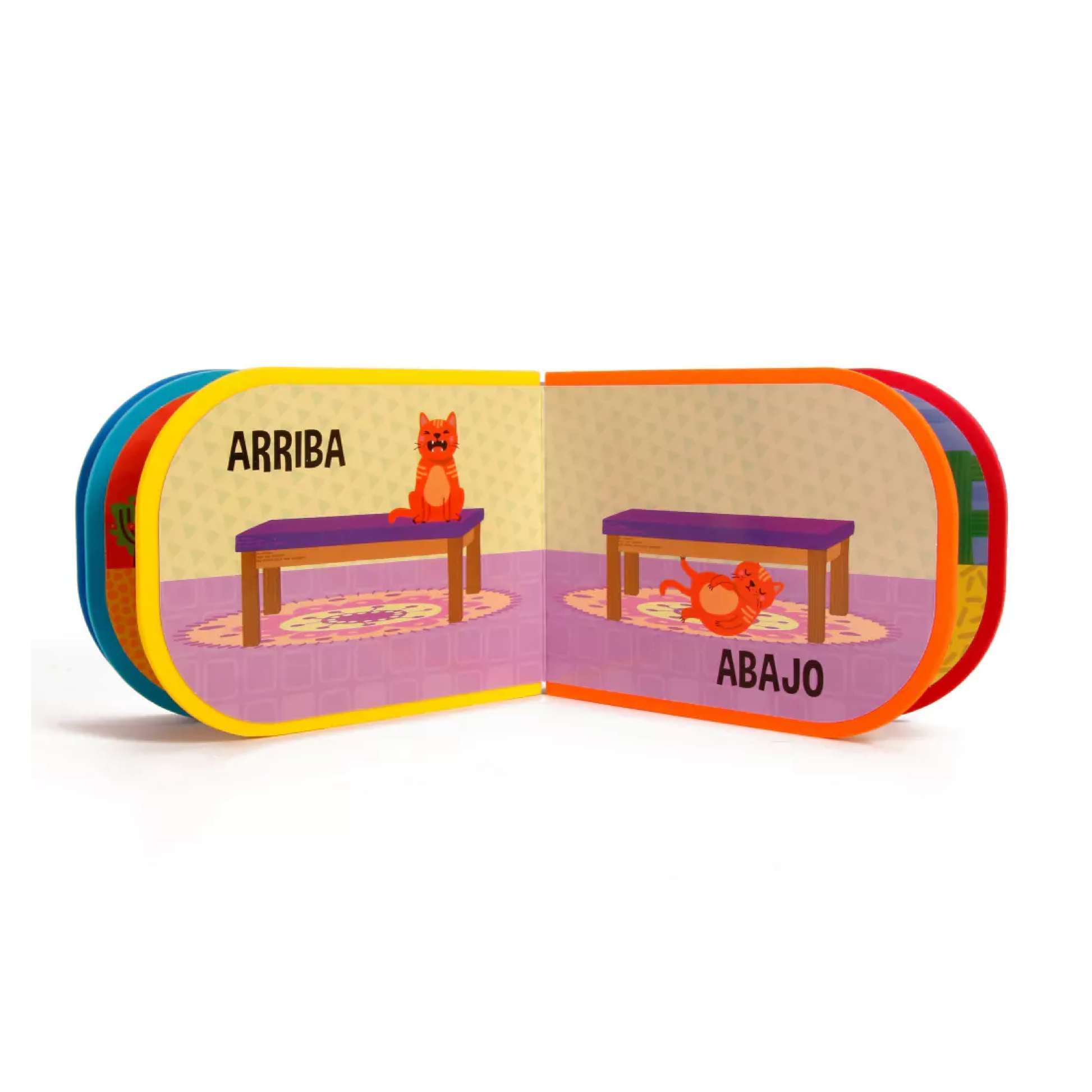 Libro de goma eva apto para las manos de todos los niños, incluye ilustraciones llenas de color para que aprenden sus primeras palabras en imprenta mayúscula.
