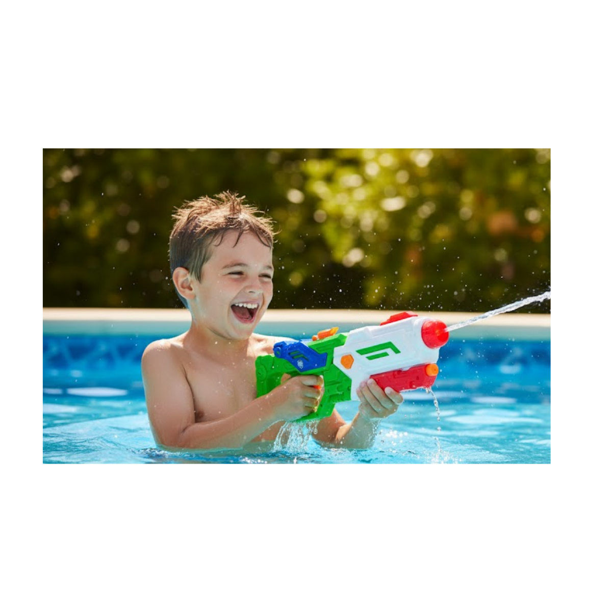 Esta pistola de agua a presión de color único ofrece potencia y alcance para batallas acuáticas. Sus dimensiones de 59 × 8 × 20 cm brindan una gran capacidad de depósito para mayor diversión.