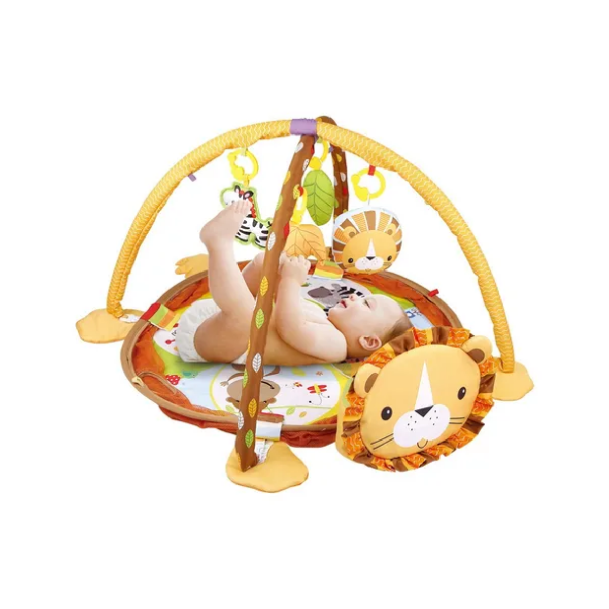 Este gimnasio de bebé proporciona un espacio seguro y estimulante, con colores y sonidos que fomentan el desarrollo sensorial.