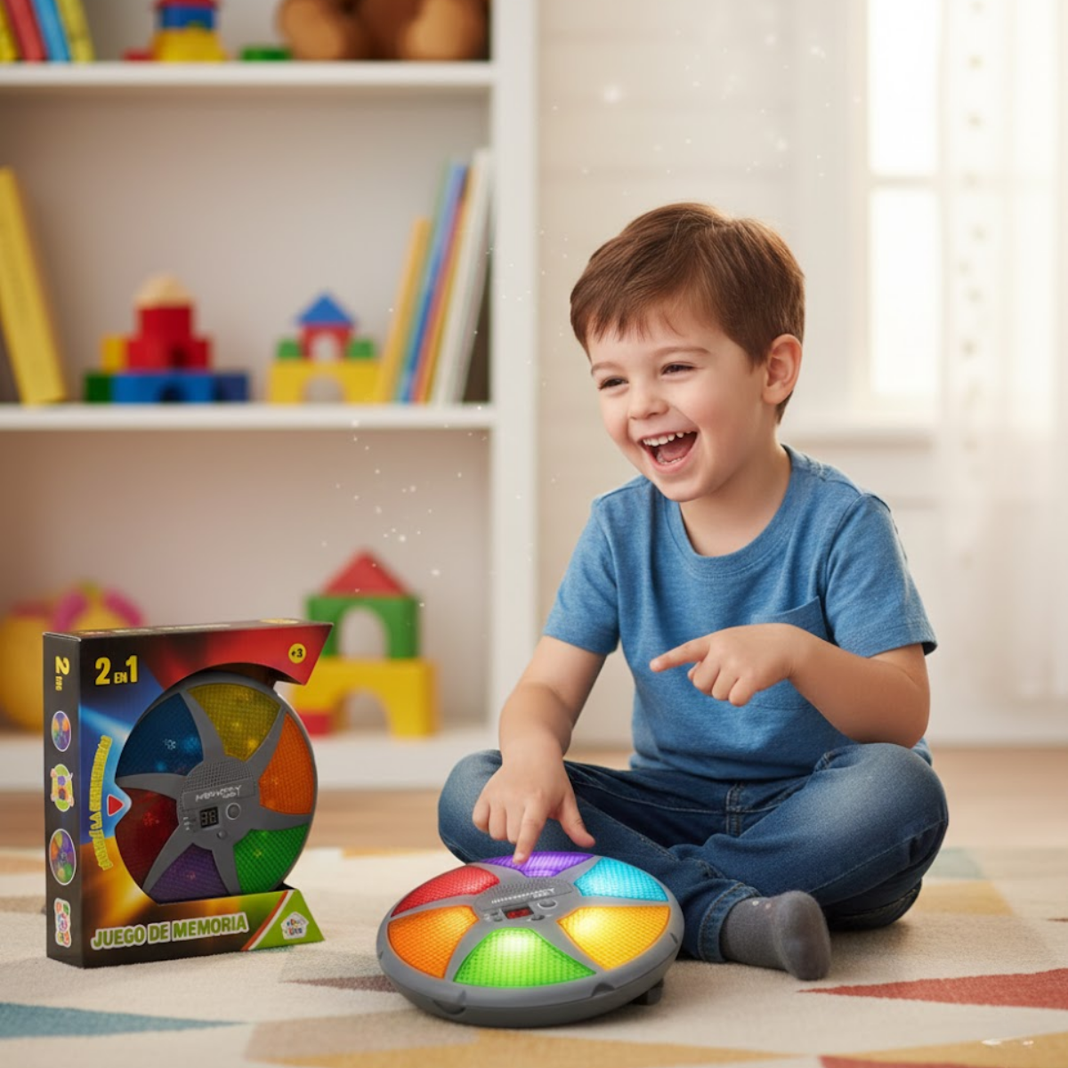 El clásico juego de memoria vuelve en una versión Deluxe diseñada especialmente para chicos. Este modelo de 20 cm de diámetro es cómodo, práctico y perfecto para manos pequeñas. Su funcionamiento se basa en seguir la secuencia de luces y repetirla en el orden correcto, ideal para estimular la concentración, el reconocimiento de patrones y el desarrollo cognitivo.
