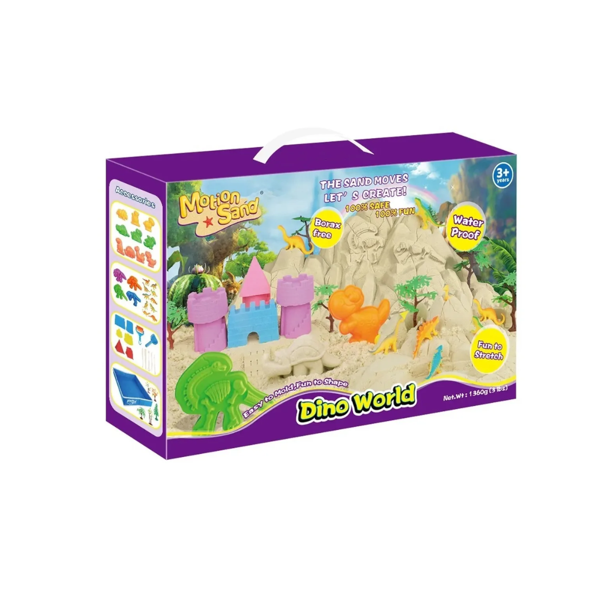 Motion Sand es la arena exprimible donde puedes SENTIR la diversión. Es 98% arena, 2% Polímeros y 100% diversión. También es libre de gluten. Motion Sand estimula la creatividad de los niños, se limpia fácilmente y se adhiere a sí mismo, no a lo empacas, lo tiras, le das forma y lo amas, Motion Sand es tan increíble que no puedes dejarlo. Es cinético, lo que significa que se adhiere a sí mismo y no a ti. Es fácil de moldear y moldear, y fluye a través de los dedos como un líquido de movimiento lento. La exclusiva fórmula antibacteriana, no tóxica, nunca se seca.