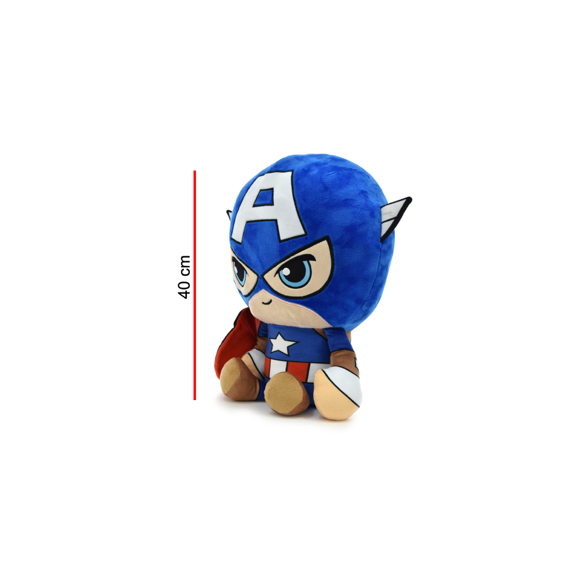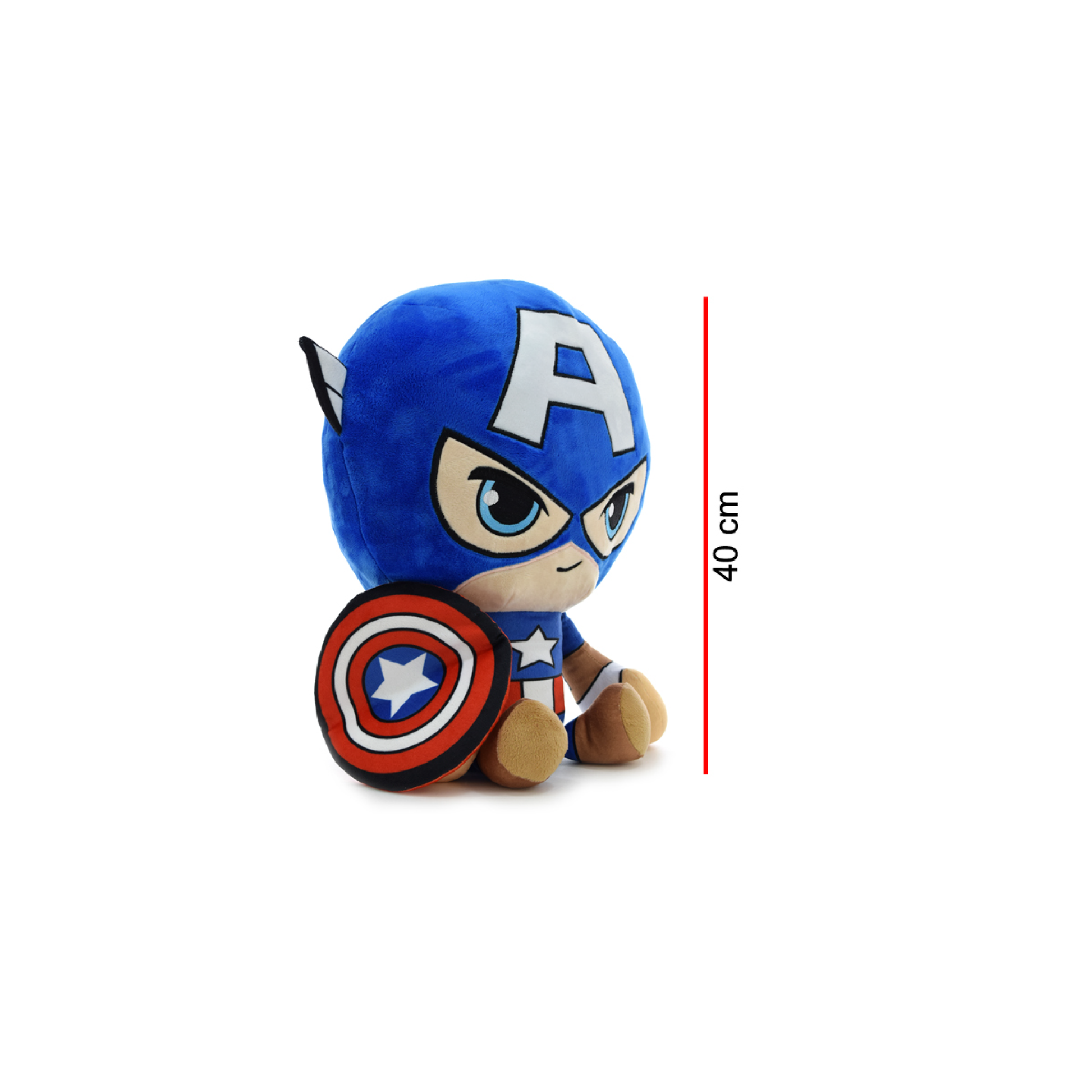 Peluche Marvel, motivo Capitán América sentado de 40 cm. Material poliéster, hipoalergénico.