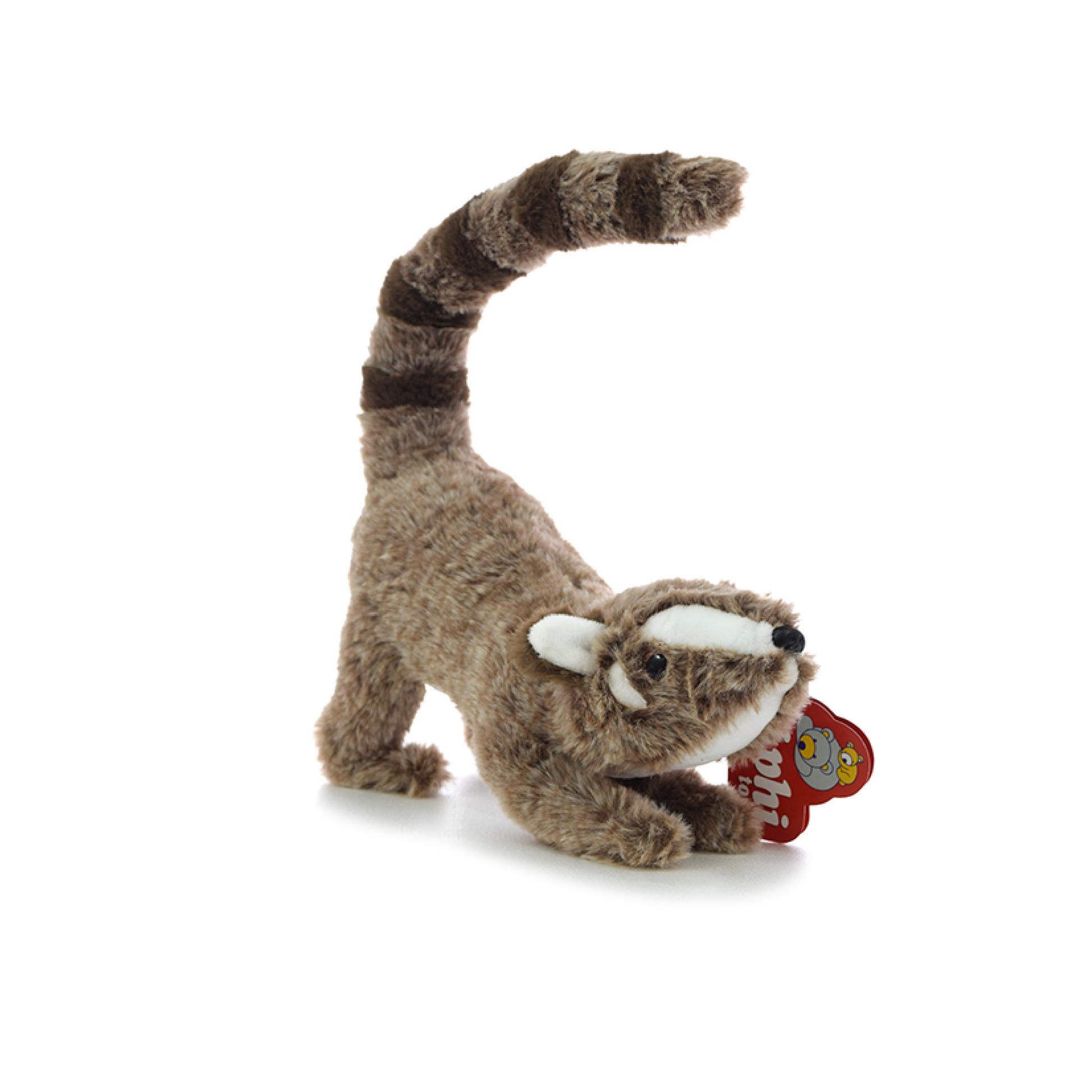 Peluche de coatí, mide 23 cm.
