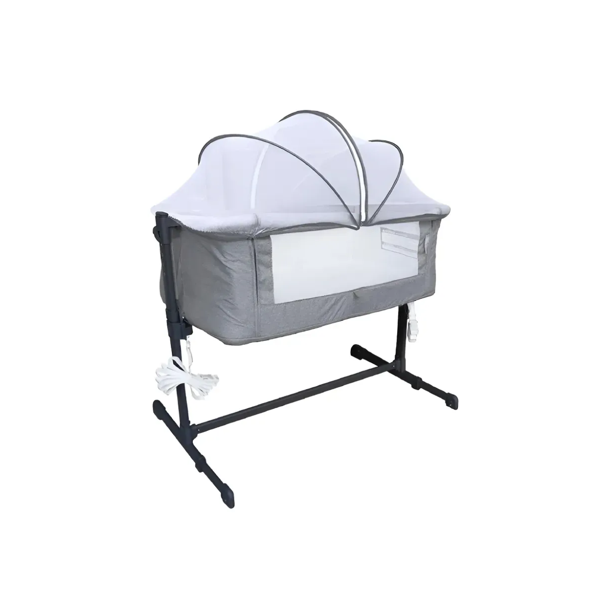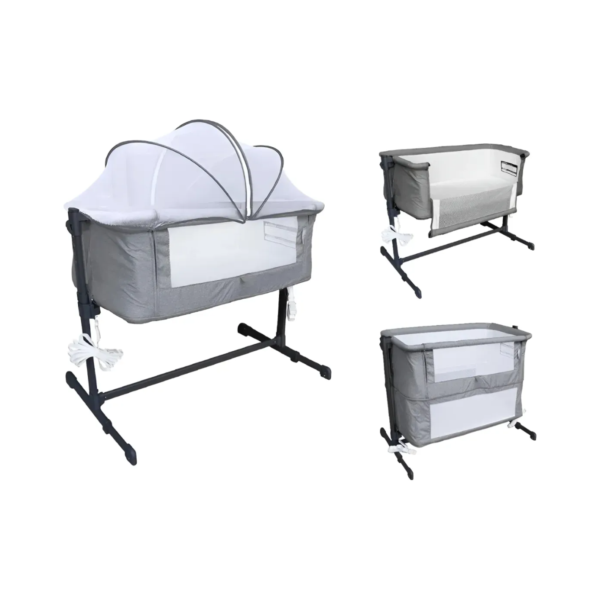 Fabricada con materiales de alta calidad (plástico y tela) para asegurar su durabilidad y fácil limpieza. Su diseño funcional permite un montaje sencillo y seguro junto a la cama de los padres. Con un elegante color gris, se integra perfectamente con cualquier decoración del hogar, promoviendo un ambiente de descanso seguro y una conexión especial entre padres e hijos.