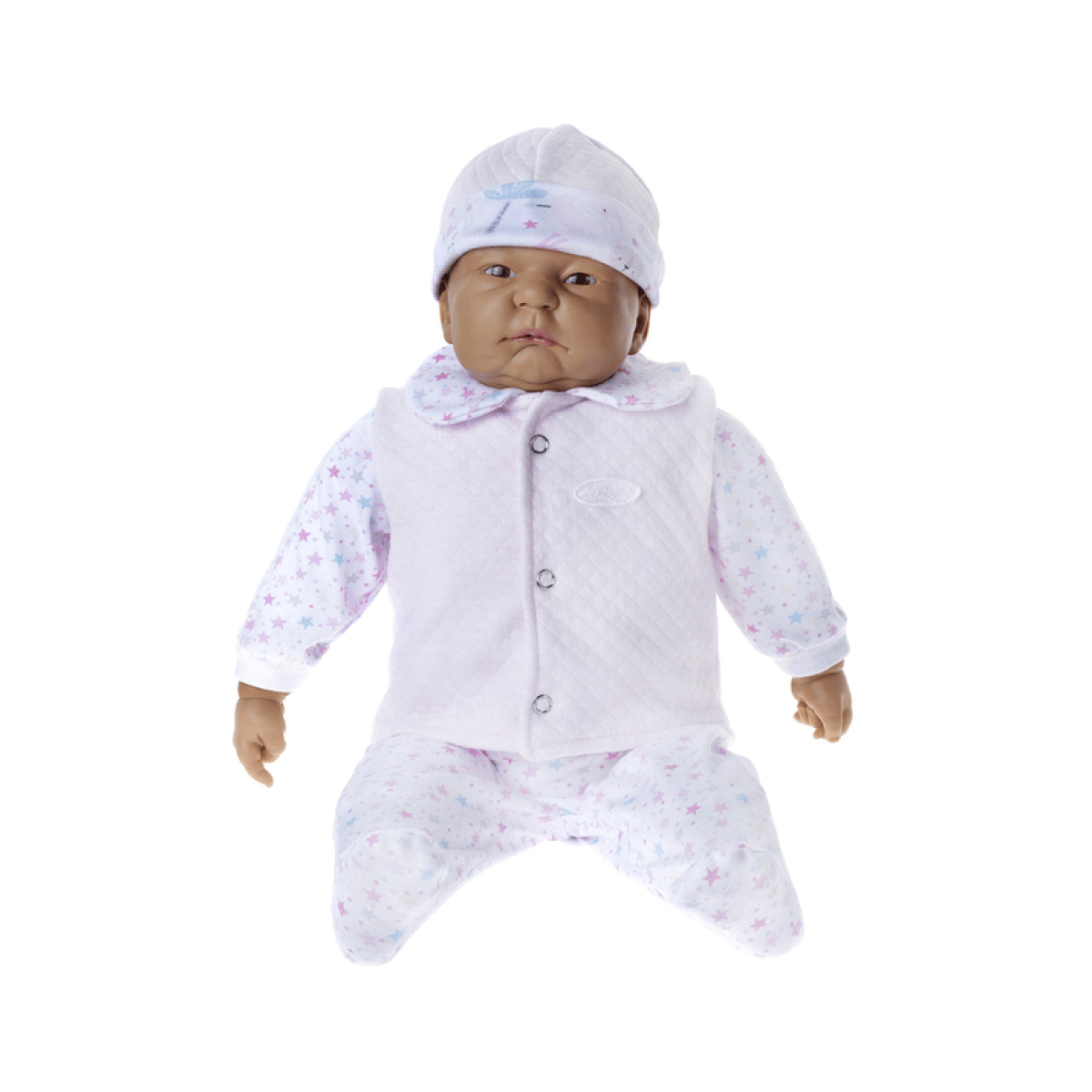 - Con cuerpo soft, relleno de vellón siliconado. Sus manitos, pies y cabeza, son de plastisol.