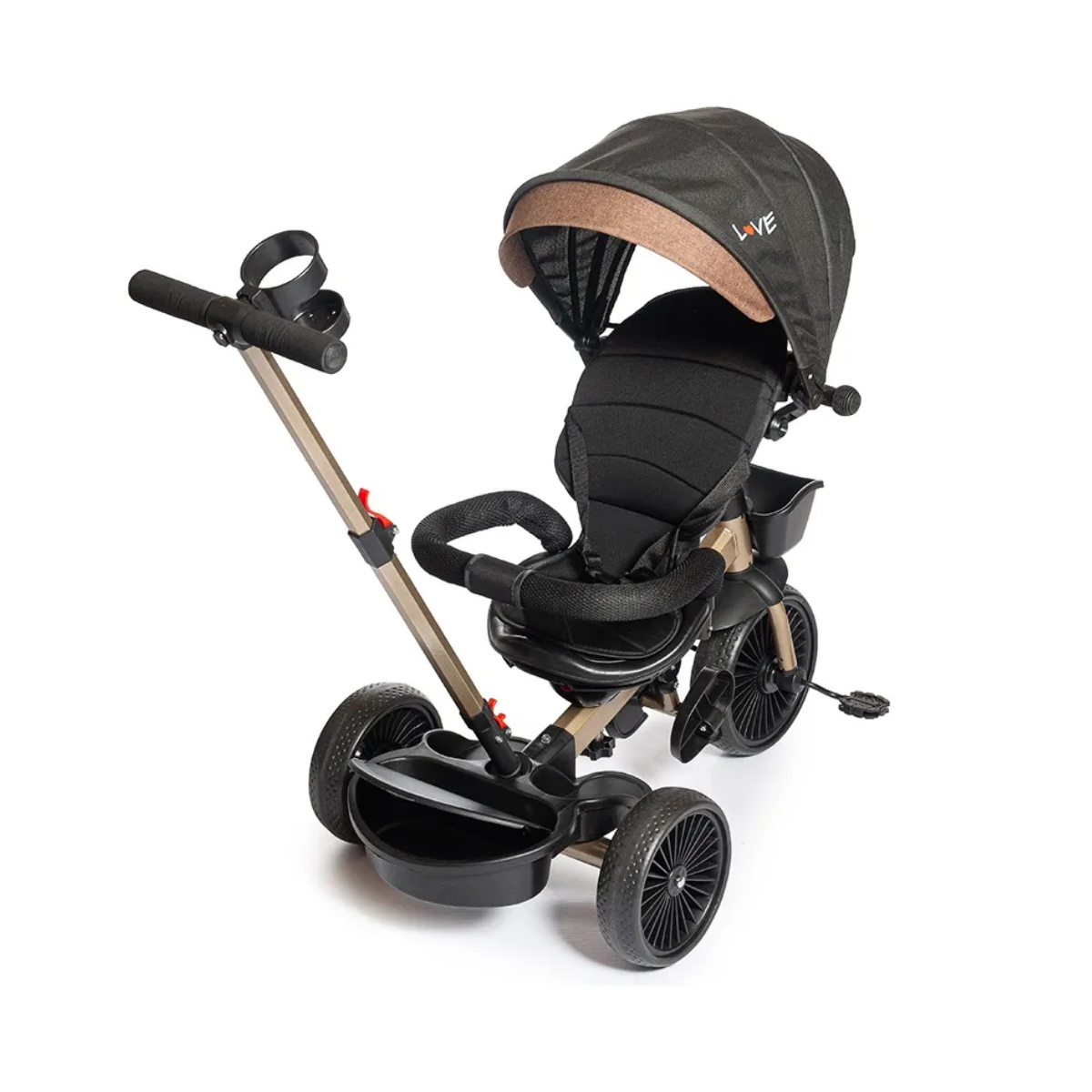 Guiador con porta vaso, capota, canasto delantero y trasero