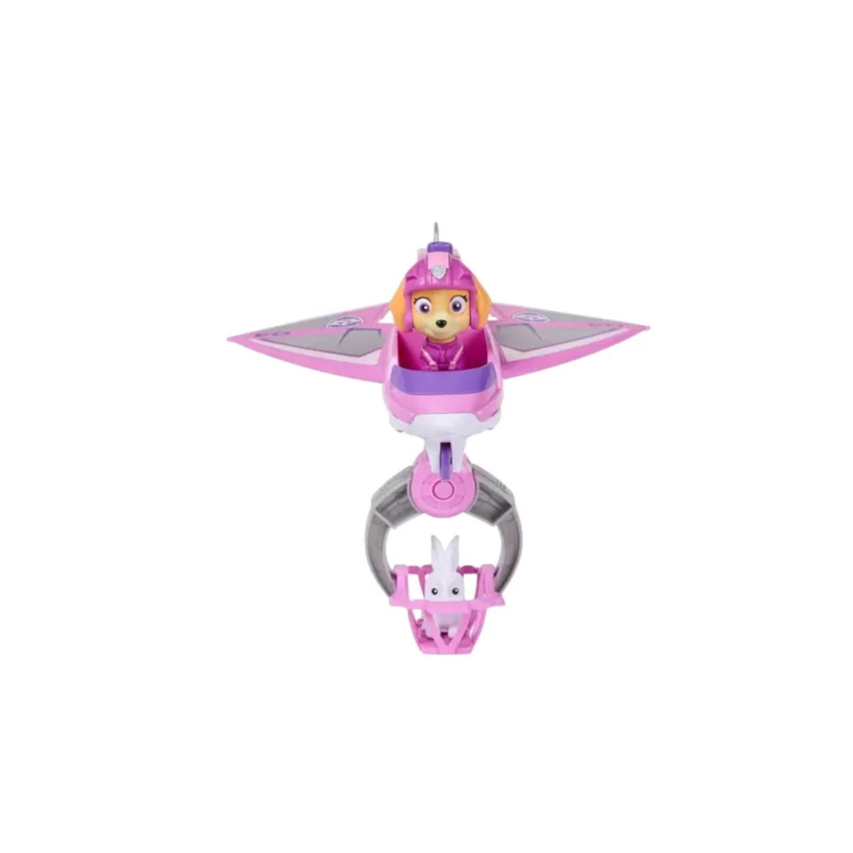 Salva la figura de tu conejito presionando un botón en el avión para extender la garra, luego recoge al conejito con la canasta de rescate y llévalo a un lugar seguro!